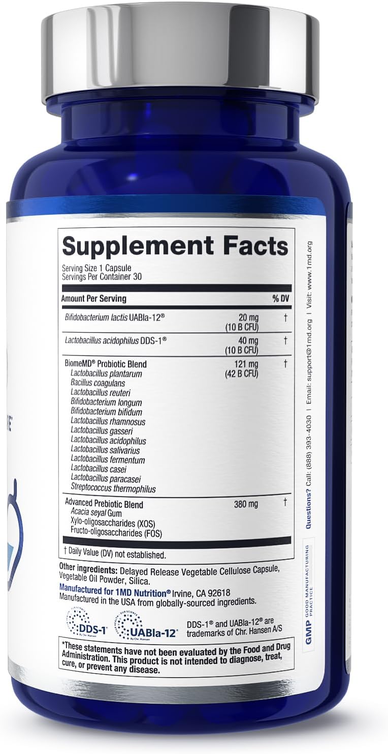 Doctor-Formulated for Potency: Formulated by a board-certified physician, this breakthrough 1MD Nutrition formula delivers a whopping 62 billion CFUs of 15 robust probiotics.* Every capsule provides unparalleled, integrative digestive support and critical immune system health.*