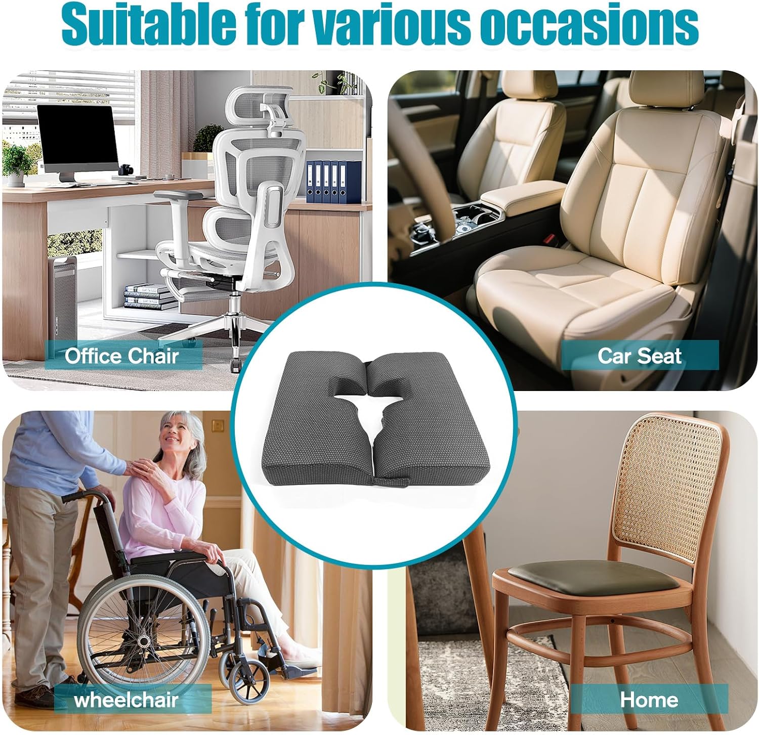 T-Cut Design for Pressure Relief : The center T-shaped opening is intended to help relieve pressure on sensitive tailbone and seated areas ; This design aims to redistribute weight and may assist in preventing discomfort during prolonged sitting