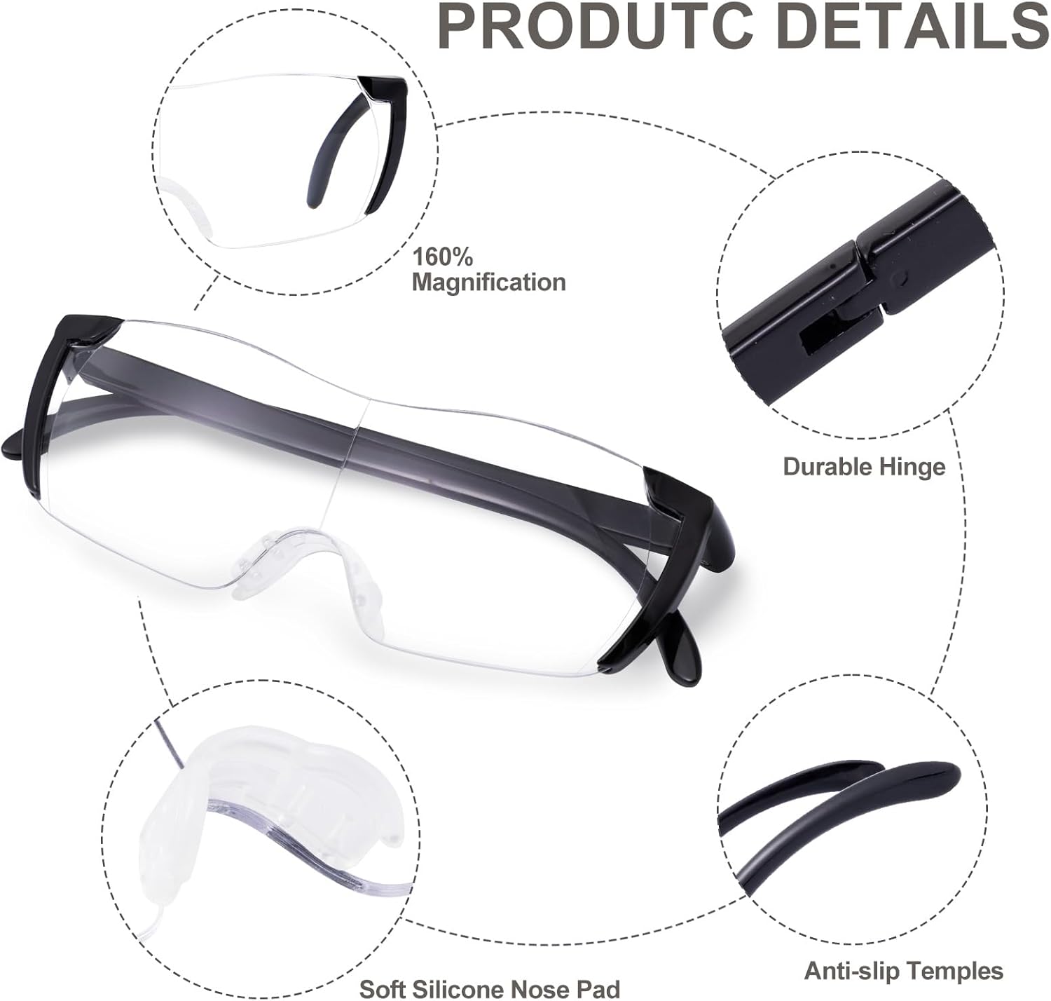 OUSHIUN 160% MAGNIFYING GLASSES FOR CLOSE WORK
