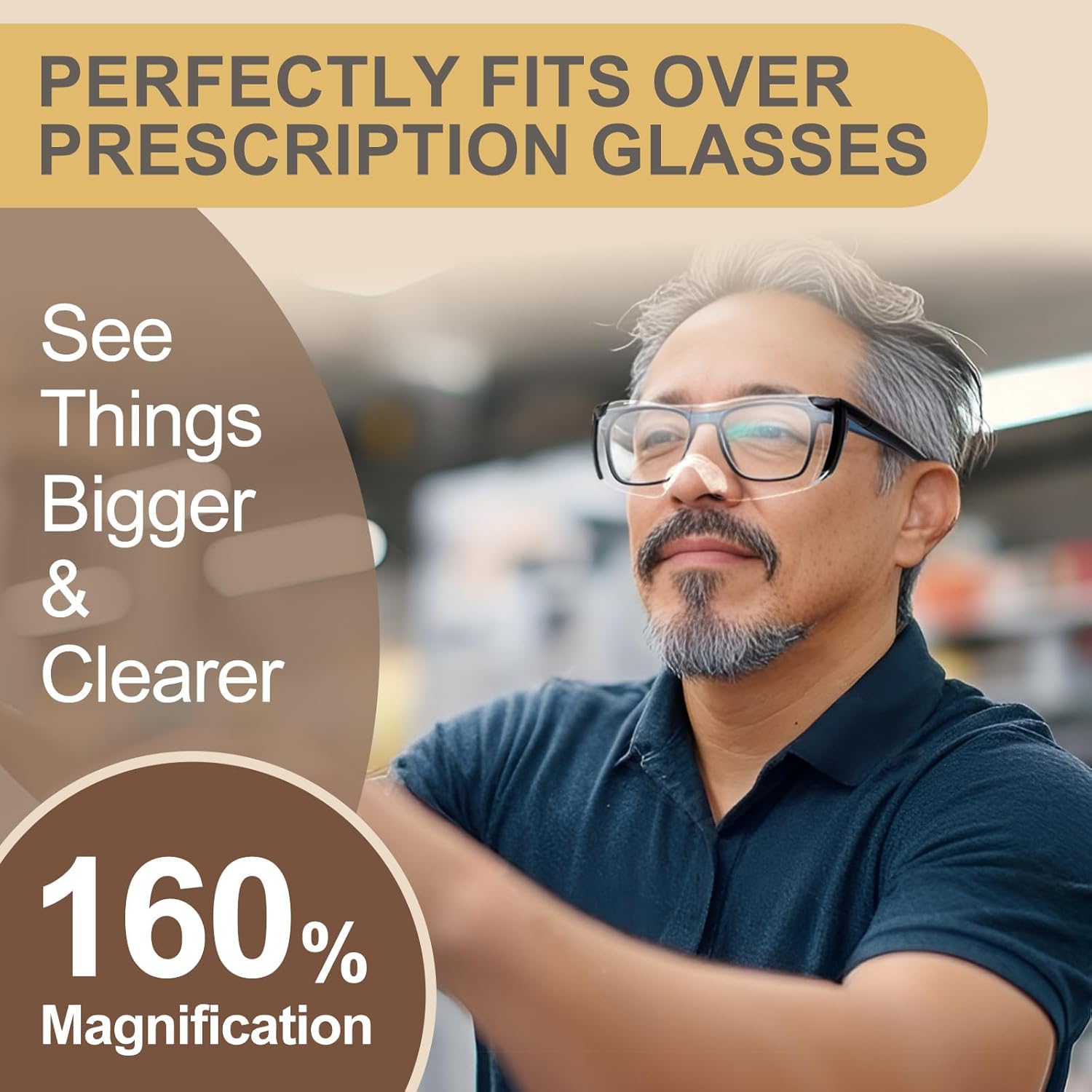 These glasses fit perfectly over your prescription glasses, offering 160% magnification to help you see fine details with ease.