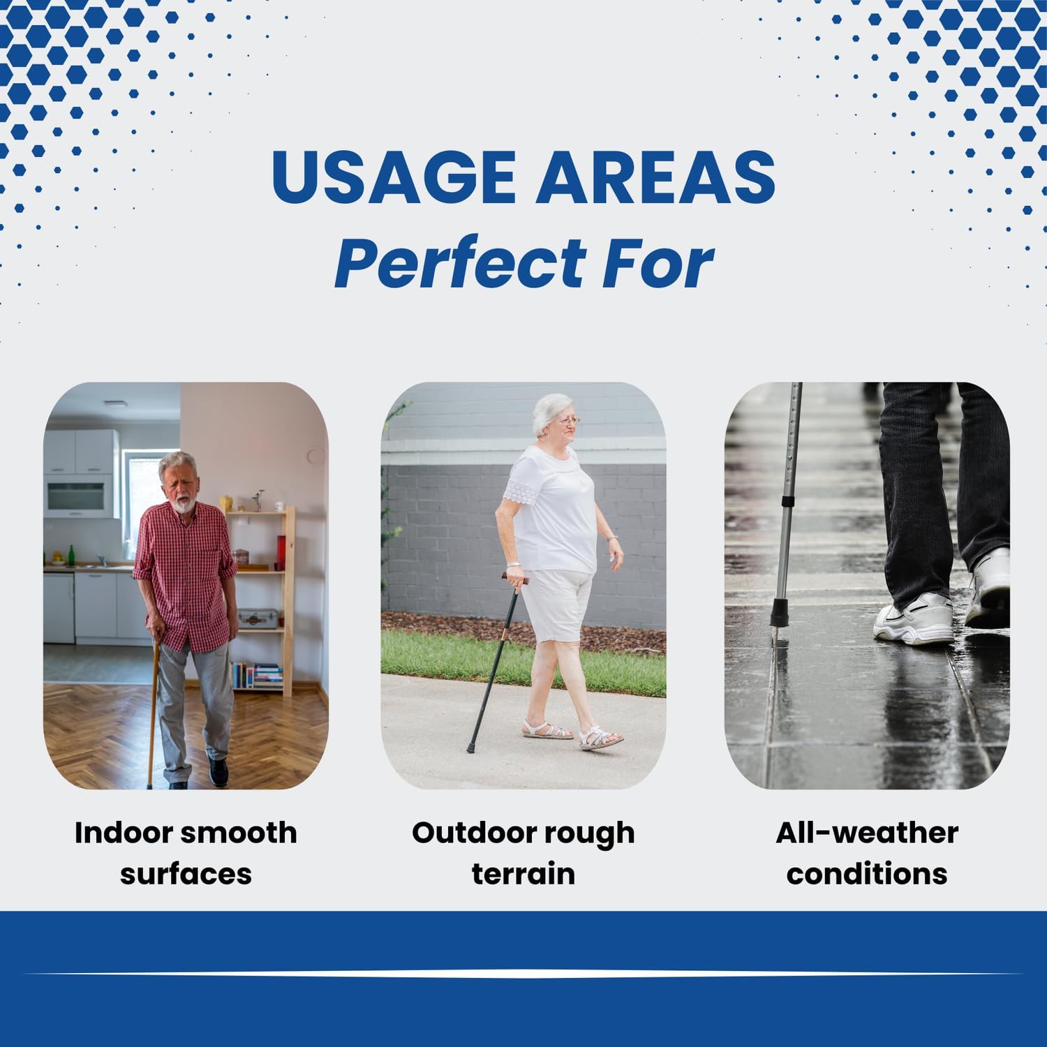 Durable Construction: Heavy-duty cane replacement tips made with premium rubber compound; reinforced design prevents splitting and extends product life; maintains grip integrity even with regular daily use on various surfaces