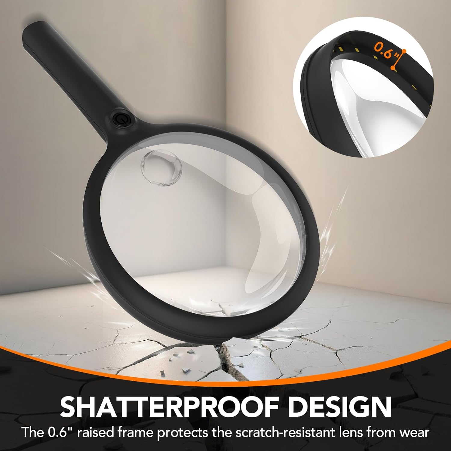 LARGE VIEWING AREA & COMFORTABLE GRIP – Designed with a 5.2-inch lens, this large magnifying glass with light offers a wider field of view, minimizing repositioning while reading. Lightweight and easy to hold, it works well as a practical handheld magnifying glass for everyday tasks