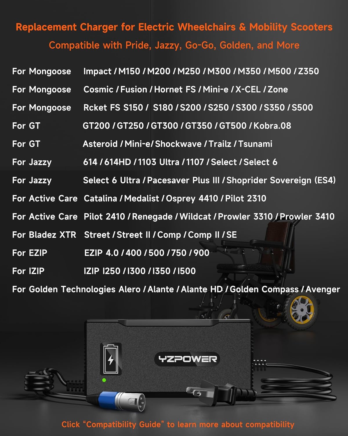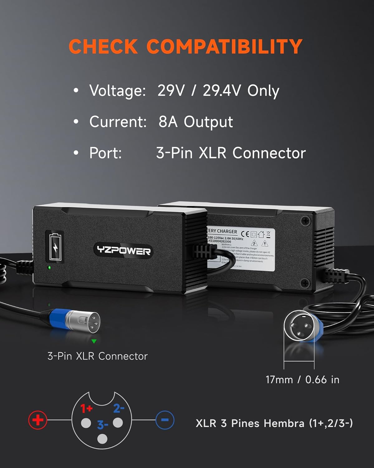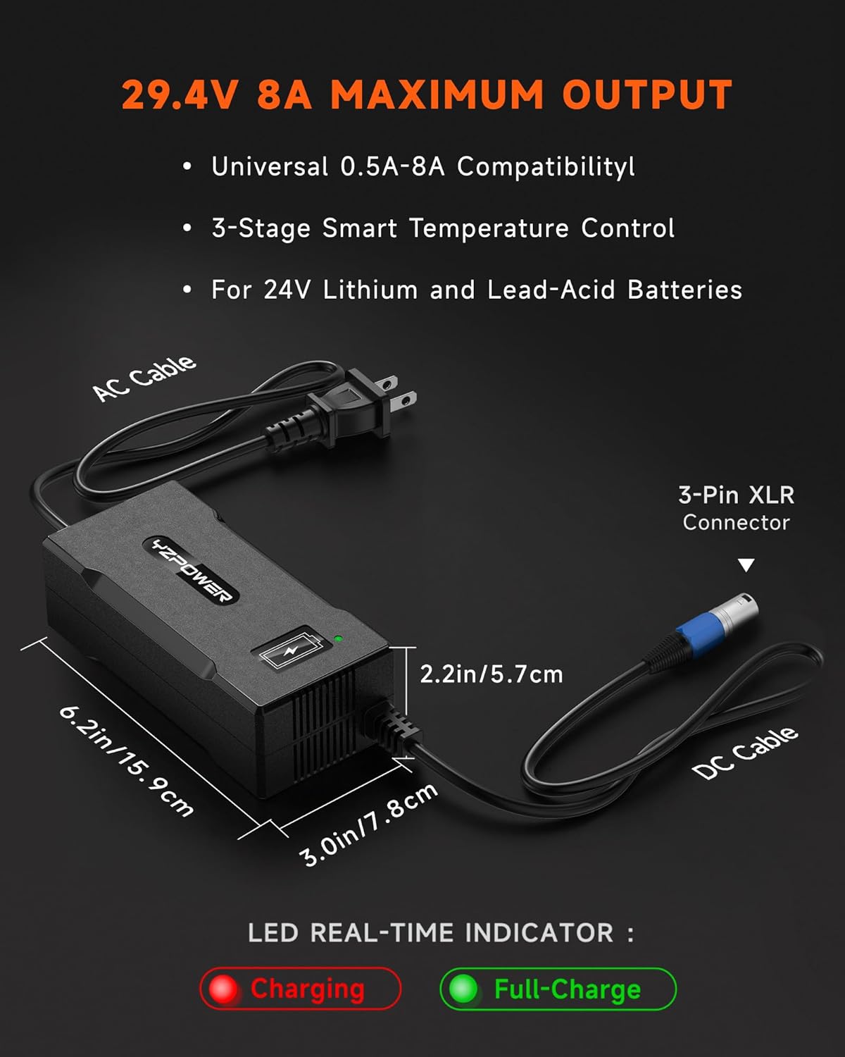 ✅【8A Fast Charging】29V 8A ( works for 24V 6A,24V 5A,24V 4A,24V 3A ) | (Output 29V 8A, Faster Charge than 24V 6A,24V 5A, 29V 4A, 29V 3A, 29V 2A) . 3-pin XLR connector works with Pride Jazzy, Drive Medical, Rascal , Golden Tech and most major brands