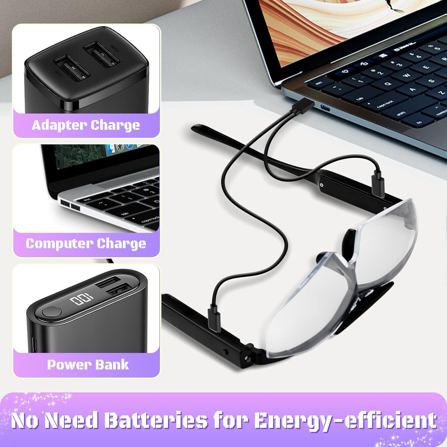 USB EFFICIENT REECHARGABLE BATTERY: The magnifier can be powered by the included charging cable. You no longer need to buy batteries, thus reducing weight; micro-USB port can be fully charged in 1.5 hours, with a full battery life of 3.5-6 hours.