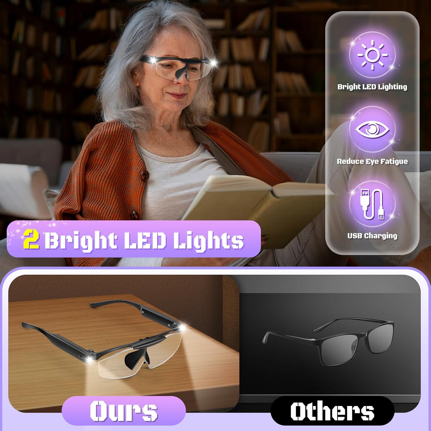 BRIGHT LED LIGHTING: This magnifier has built-in bright LED lighting on both sides of the frame to give you a clearer view.The LED lighting helps to relieve eye fatigue and makes reading for long periods of time or working on hobbies more comfortable and convenien