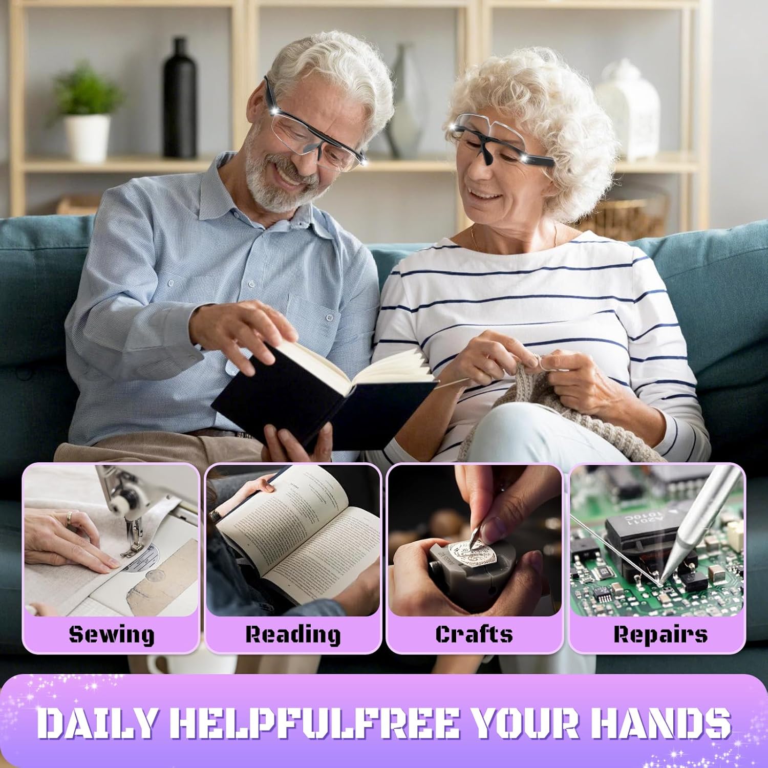 IDEAL GIFT: This hands-free head-mounted illuminated magnifier is a great vision aid for reading, cross stitching, repairing, sewing, welding, jewellery processing and other fine work. A thoughtful birthday/Christmas/New Year gift for craft enthusiasts or elders.