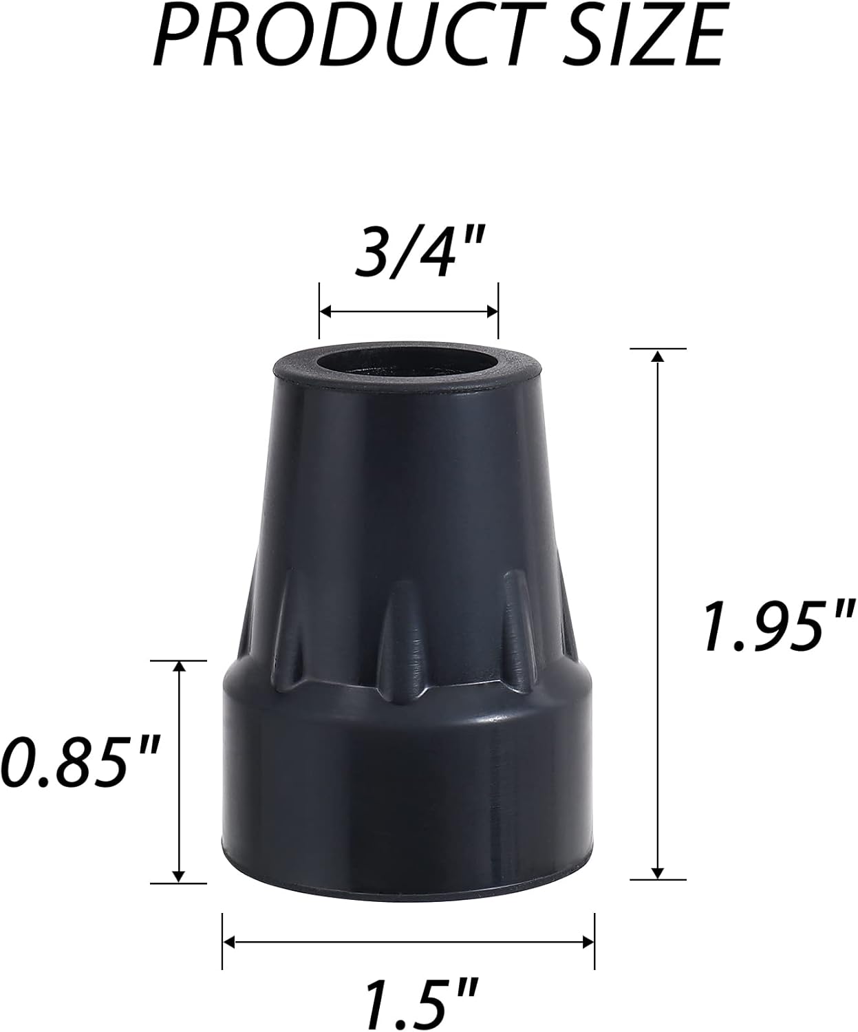 Available Size: 3/4 inch, 7/8 inch and 1 inch cane tips replacements, very easy to install. No need tools to install, fits aluminum and wood crutches