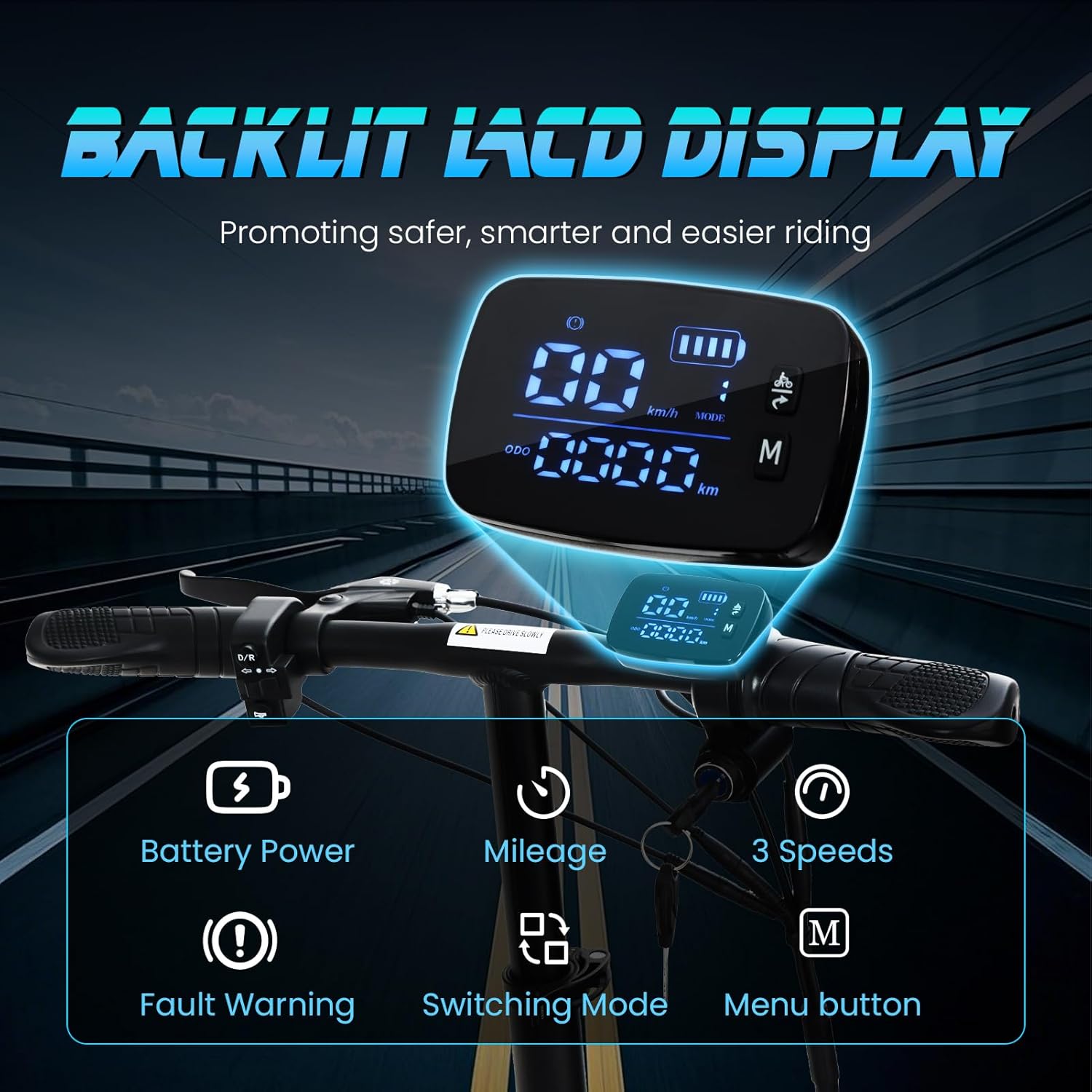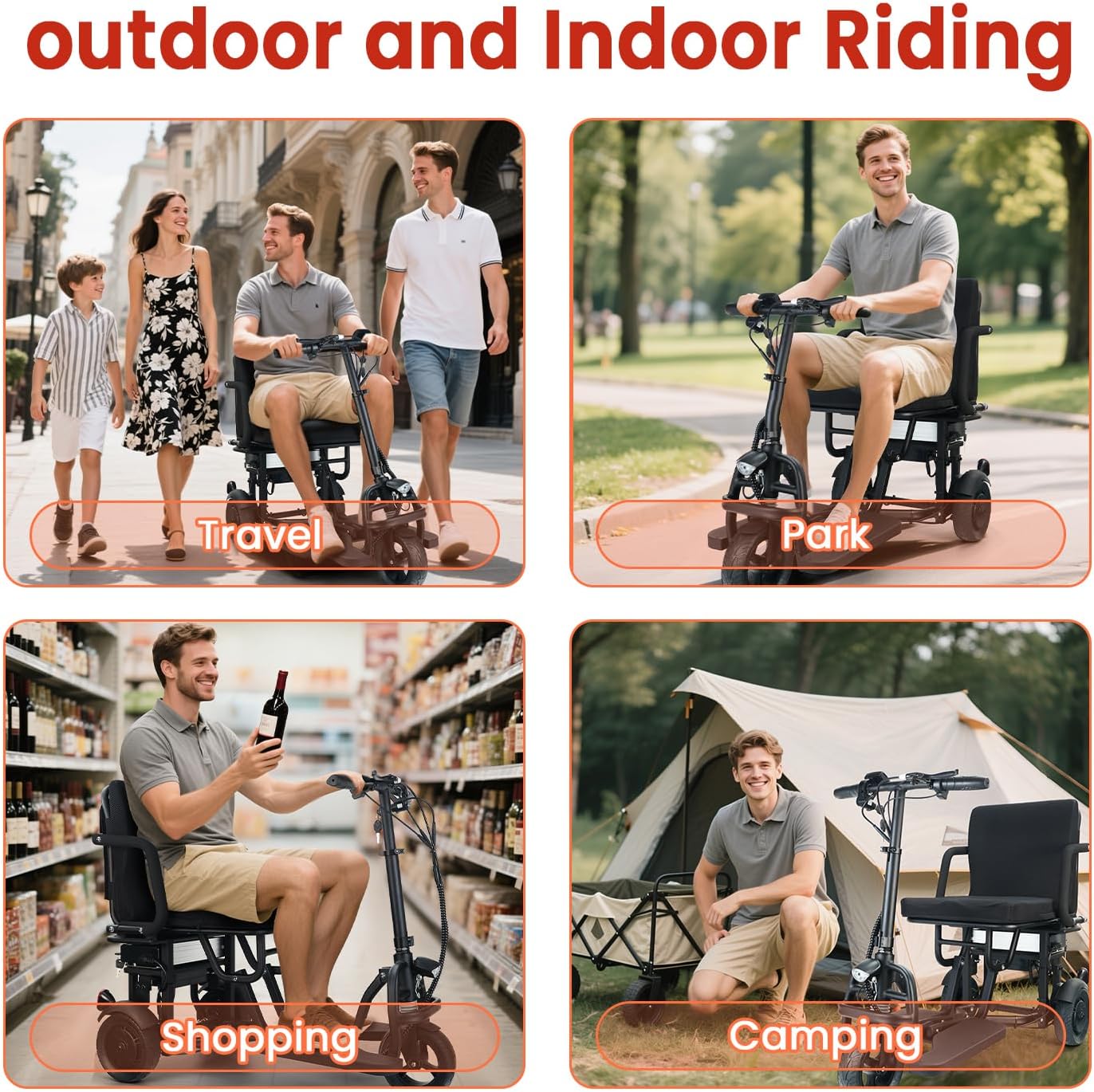 【Humanized Design Mobility Scooter】 In addition to the handlebar height being adjustable according to height, the newly upgraded mobility scooter has three speed settings, maximum speed in each gear is: 3.73/6.21/9.32mph, respectively.the benefit is to adapt to different users, such as the elderly, novice, different needs for speed. Enhance the safety, in the event of an emergency low-speed gear is easier to control. Optimize range and energy consumption, low-speed gear is more energy-saving, and high-speed gear is used for the urgent need to speed up the scene