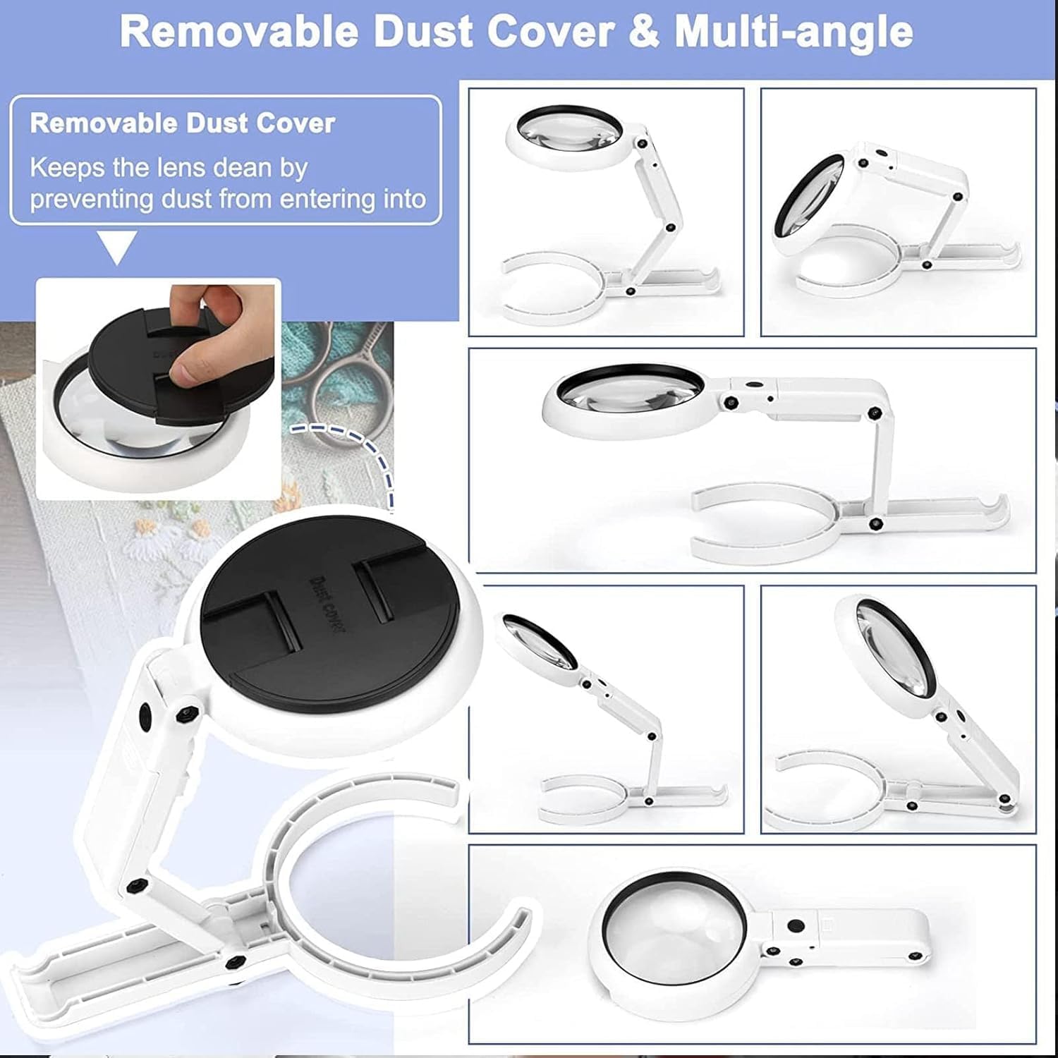 Versatile Folding Design for Multiple Uses – Our foldable design allows the Magnifying Glass with Light and Stand to function as both a table lamp and a desk magnifier. Use it as a portable handheld magnifier for reading or as a stand magnifier for hands-free close work.