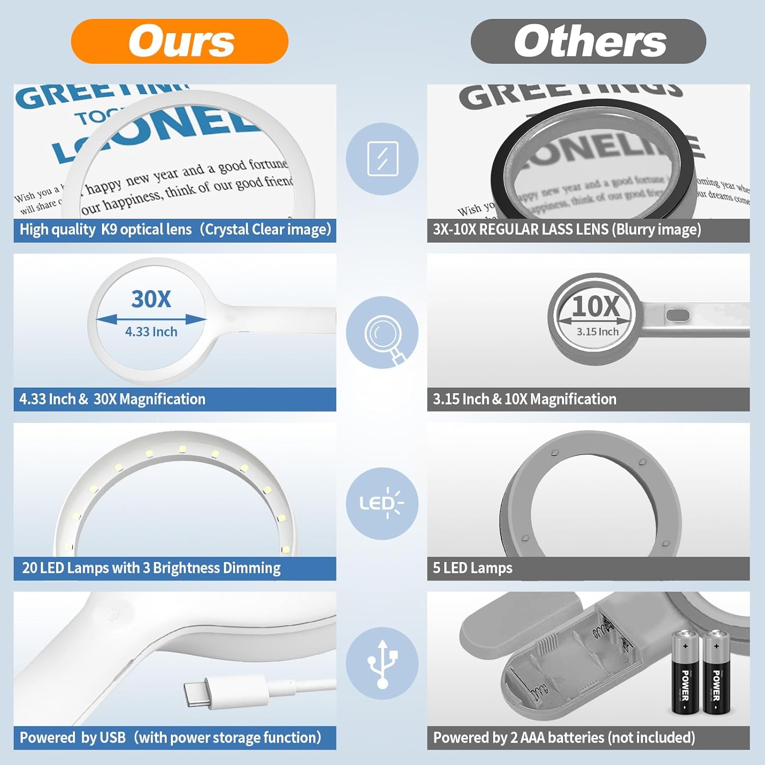30X Magnifier: Magnifying glass for reading provides 30X magnification, which allows those users with macular degeneration/ hyperopia/ myopia to read text and small print better
