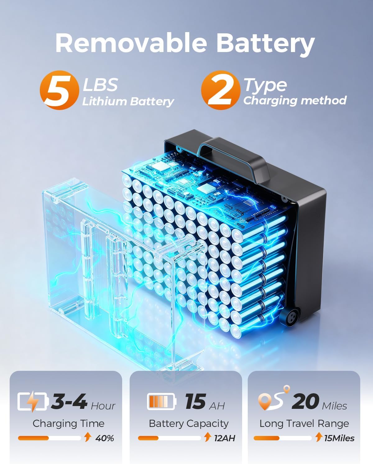 20 Mile Range Battery – Say goodbye to range worries! The detachable 15 AH lithium battery offers up to 20 miles of travel—plenty for navigating sprawling mall hallways or cruising coastal boardwalks at sunset. Charging is hassle-free, no battery removal needed, and a full charge takes roughly 3-4 hours