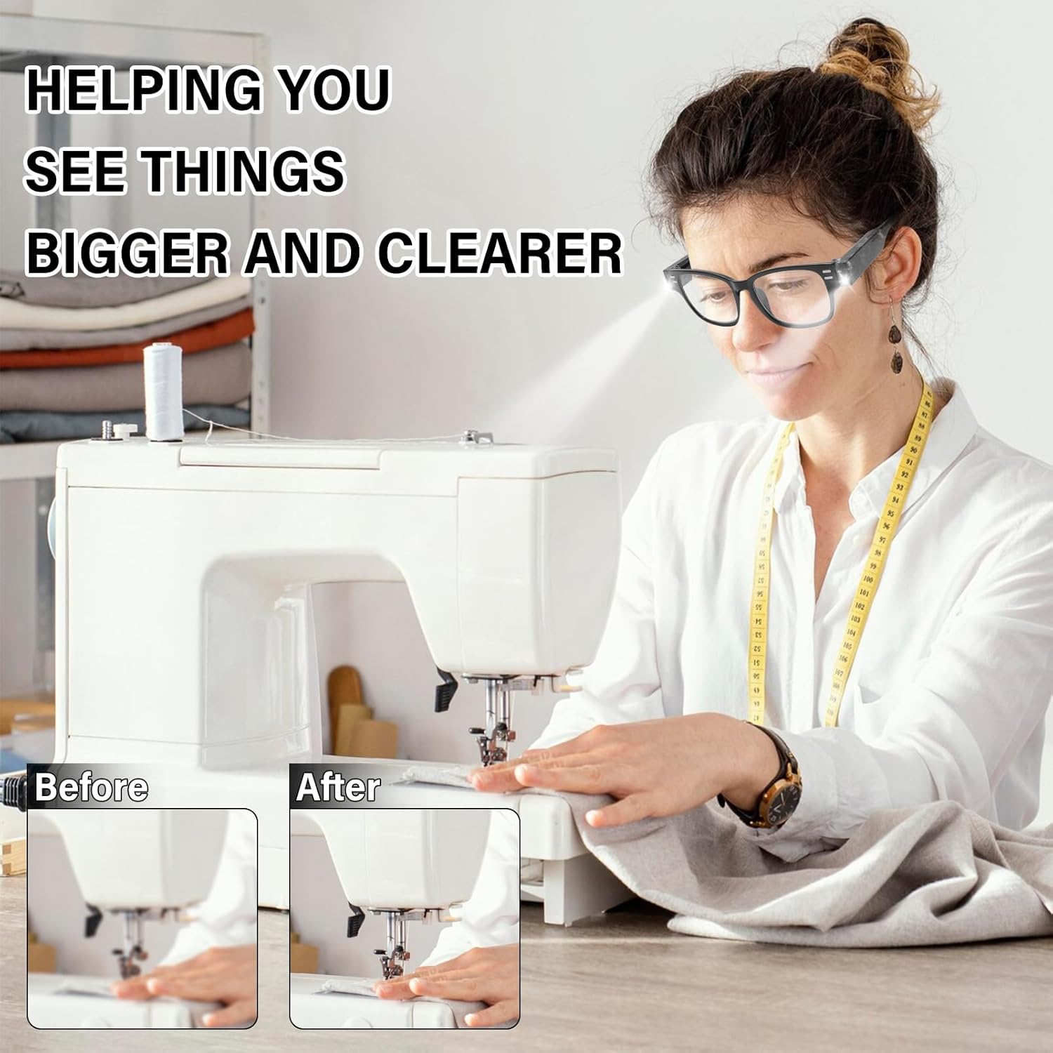 Reading glasses come with bright LED lights on each side, which can help you see something better. Can increase your visual precision during close work tasks in low-light areas. Such as easily reading in the dark. Effortlessly thread a sewing needle. Work on electronic repair projects with ease. Accurately paint small figurines, great for DIY Projects.