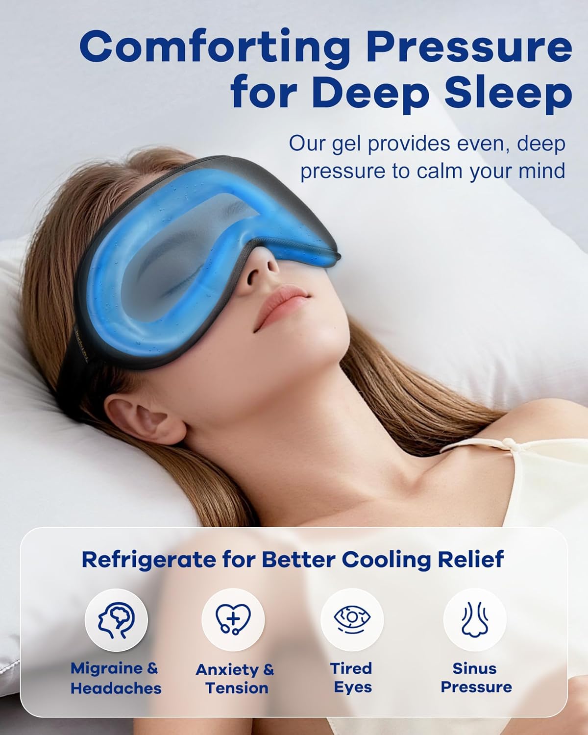 Cooling Gel Therapy for Eyes: Ice-cold gel insert provides soothing relief for migraines, tension, headaches, or eye fatigue, acting as a cooling cover for your eyes. Chill in the refrigerator for enhanced relief. Perfect for hot sleepers seeking refreshing, cool relief all night.