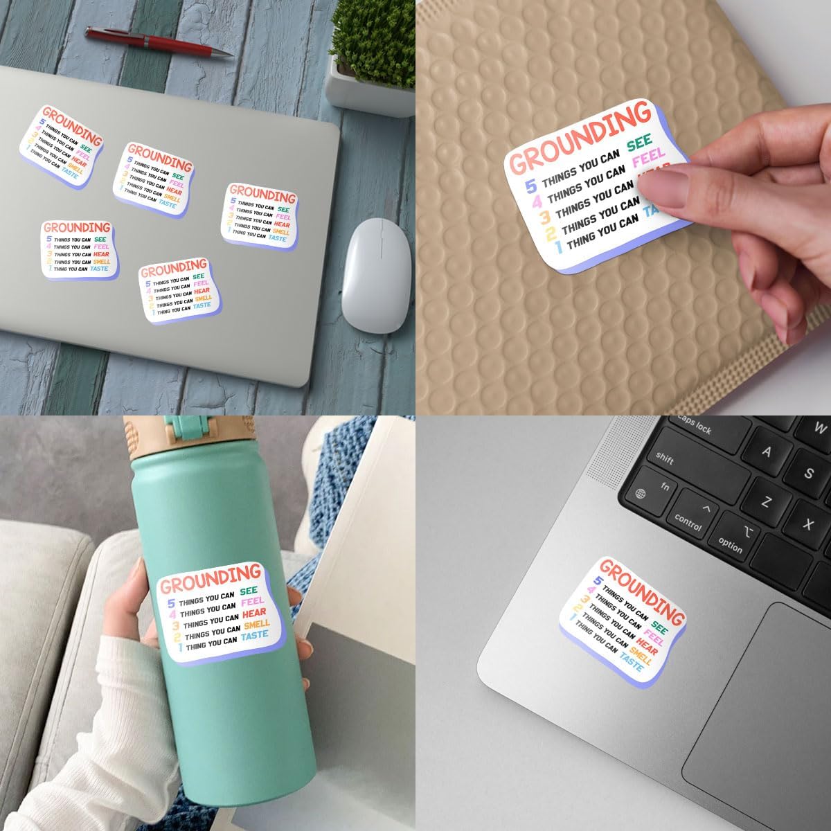 🎒 Versatile Use – Apply Anywhere Ideal for water bottles, laptops, journals, phone cases, notebooks, or workspaces. A portable and accessible way to practice grounding.