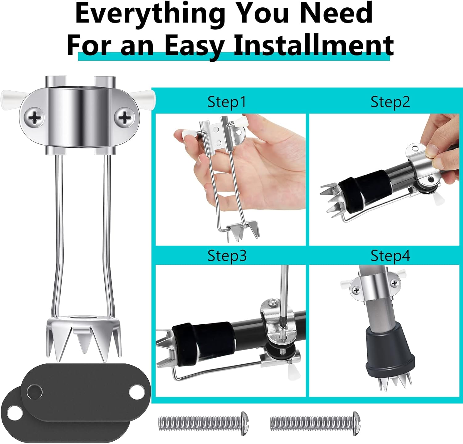 Quality Stainless Steel Material: the cane ice grips are mainly made of reliable stainless steel materials, strong and sturdy, not easy to break or deform, rust proof and long lasting, which can be applied for a long time