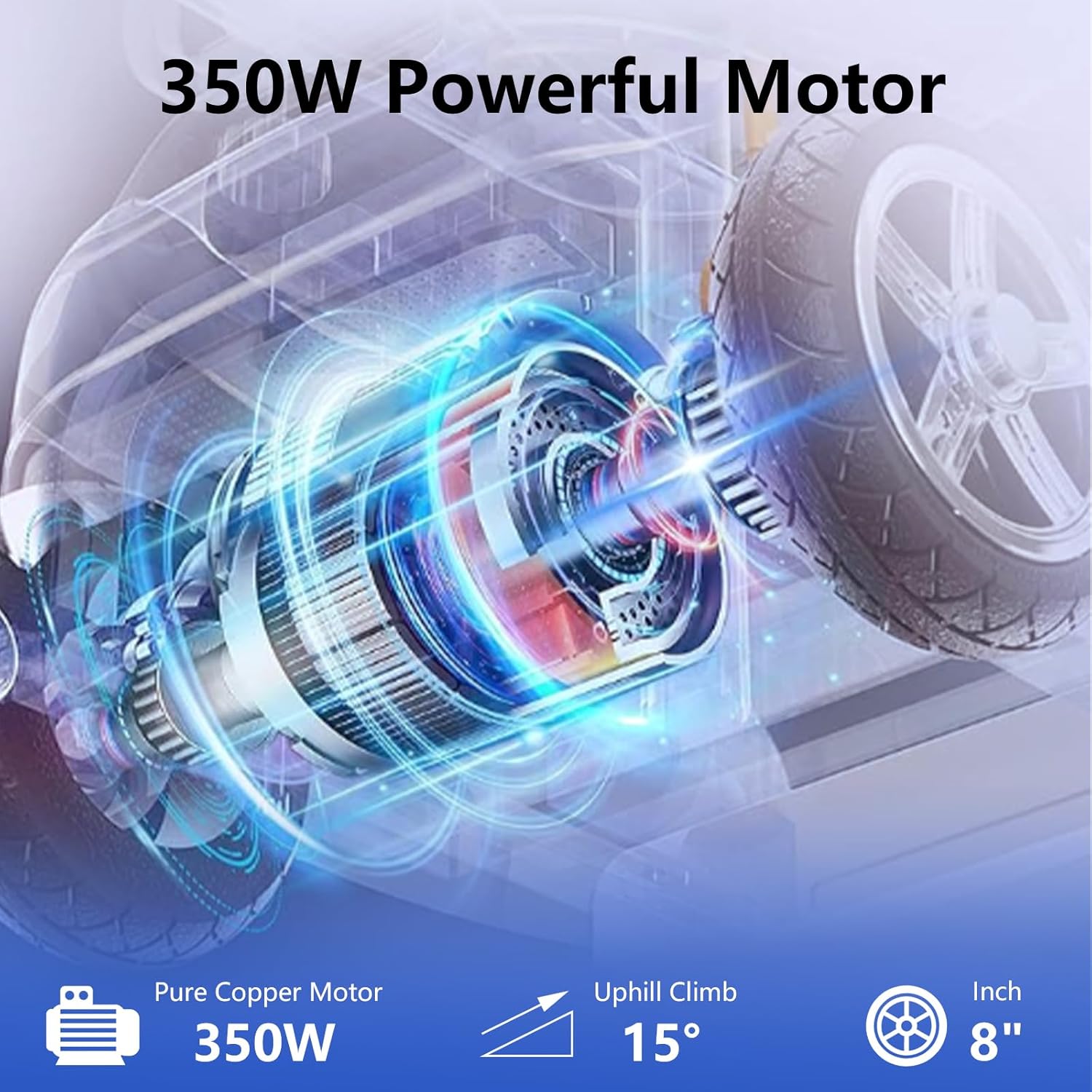 【All Terrain Suitable】Equipped with a shock absorption system and 8-inch solid tires, our mobility scooter can easily handle uneven terrain, easily cross obstacles, and bring you a smooth driving experience.