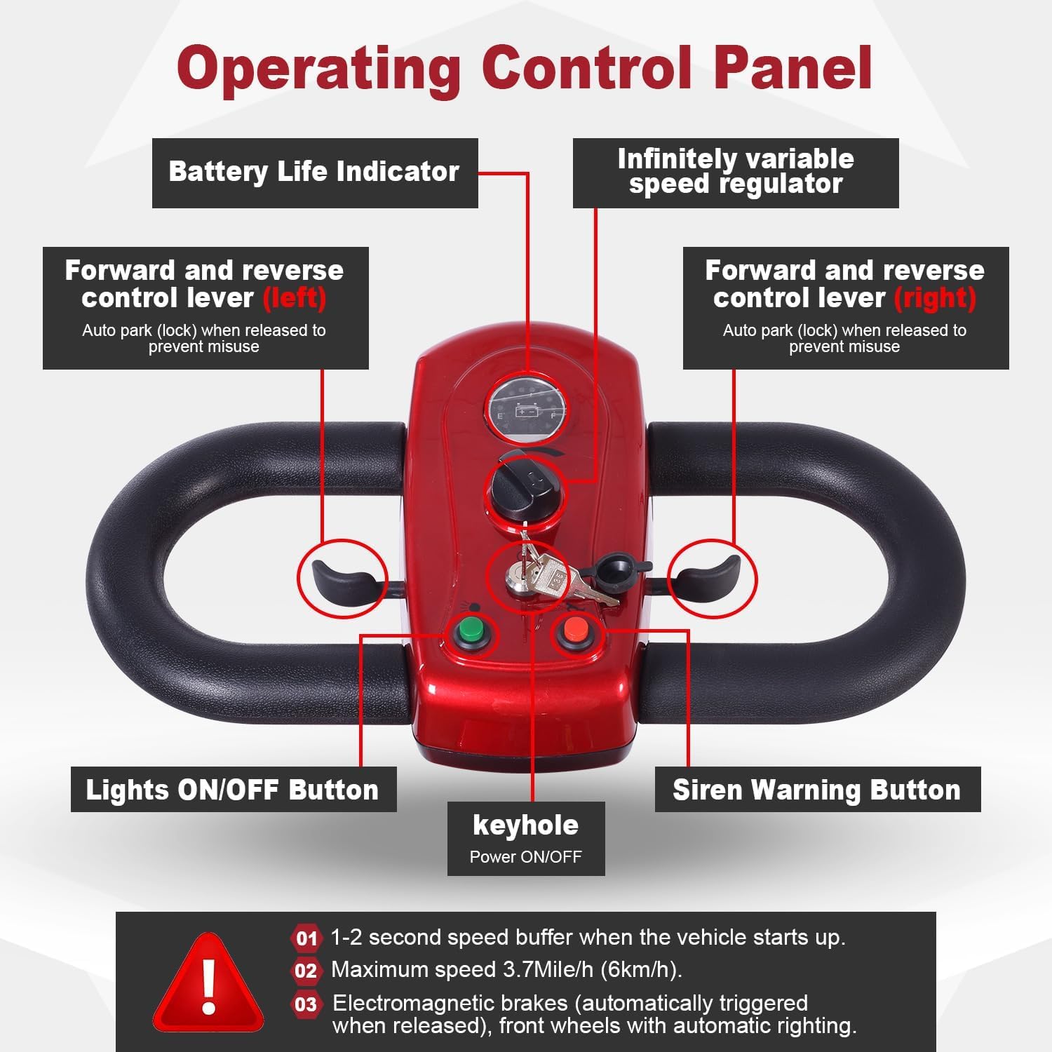 【Safe and portable travel】 Designed to safely support up to 418 pounds, Long Range 12.42 Miles ,Maximum speed is 4 mph,Convenient Front Basket,High-quality lighting