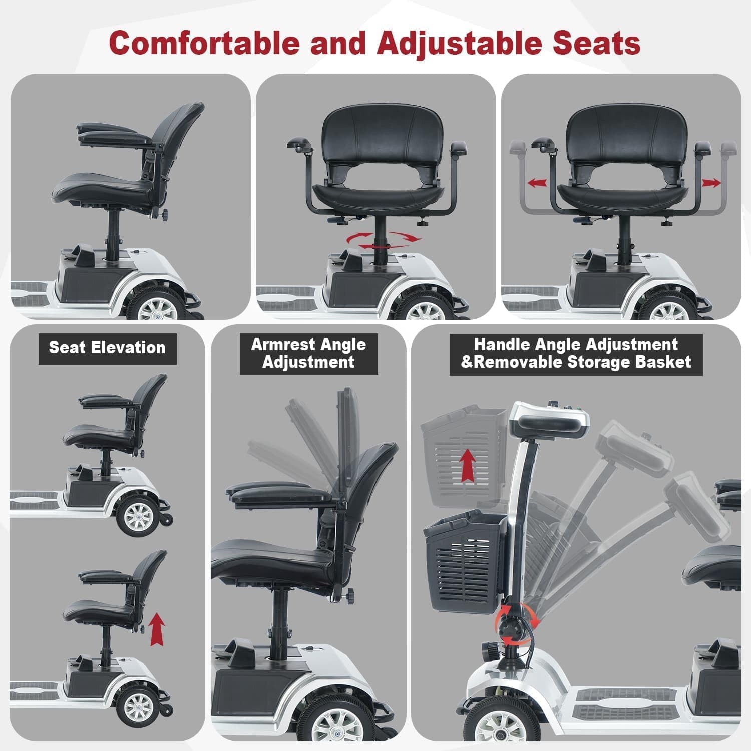 【Safe and portable travel】 Designed to safely support up to 420 pounds, Rated load:120KG(264 lb),Maximum load:190KG ( 418 lb),Long Range 22Miles ,Maximum speed is 3.7 mph,Convenient Front Basket,High-quality headlights
