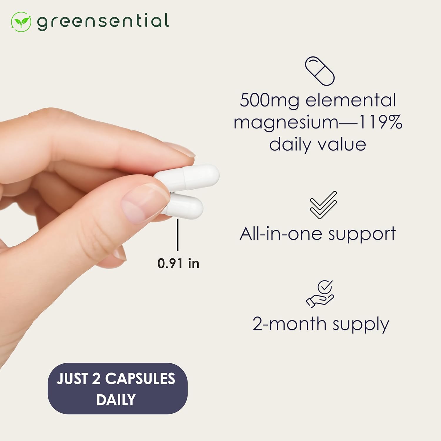 Wake Up Refreshed & Calm: Delivers 500mg of true elemental magnesium per 2-capsule serving to support restful sleep, muscle recovery, joints, and balanced energy.*