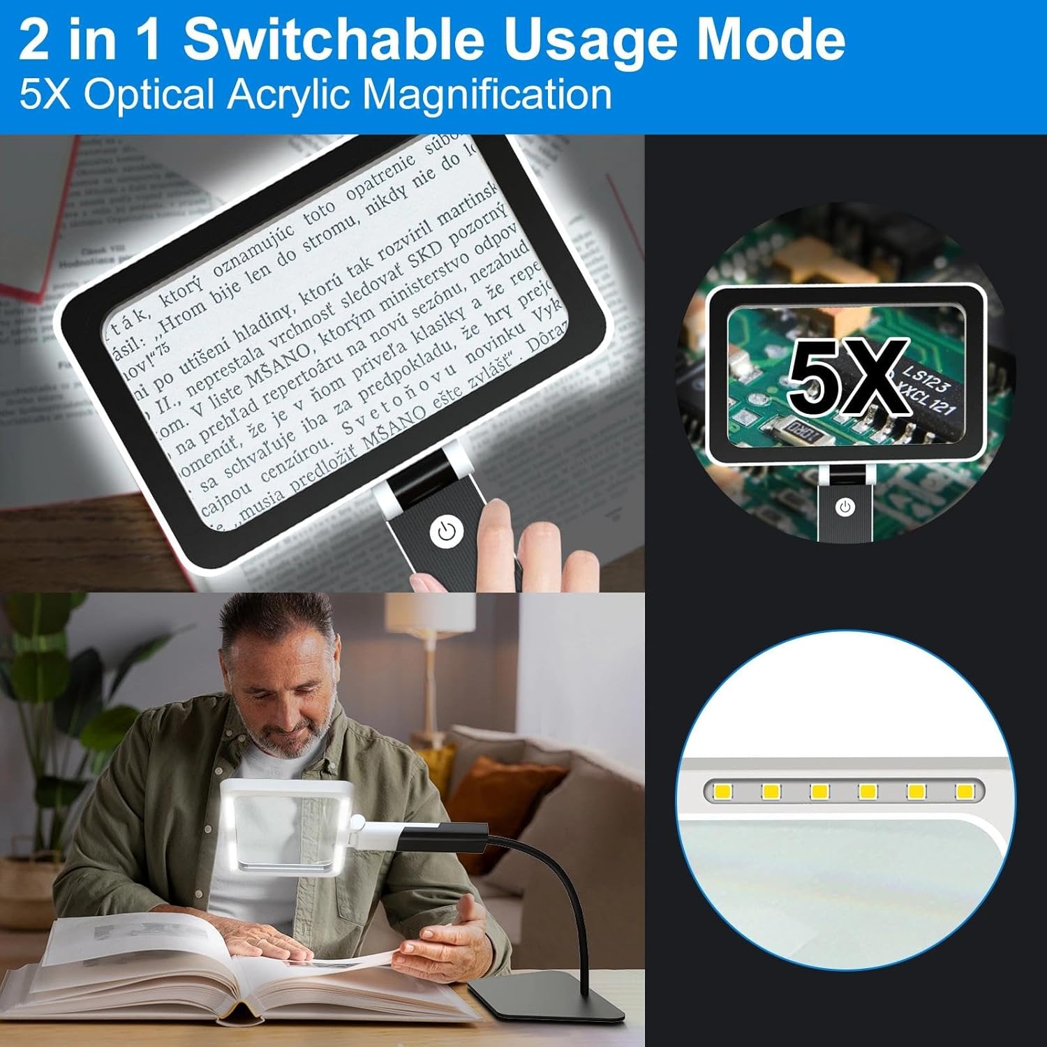 5X Optical Magnifying Glasses with Light – Experience crystal-clear 5X magnification with durable acrylic lenses.Equipped with 24 bright LED lights, this magnifying glass ensures perfect visibility and clarity anytime,anywhere