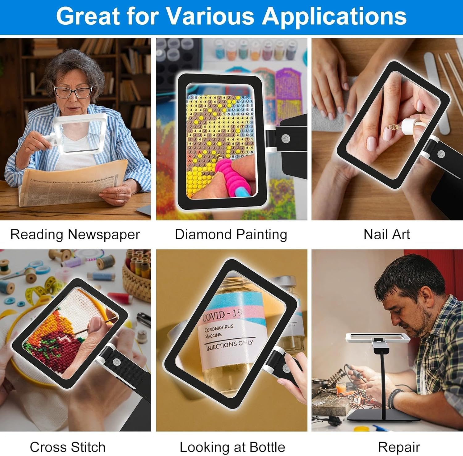 Wide Application – The Large desk magnifying glass(18.5x11cm lens) offers a wide,clear view – perfect for reading, crosswords, needlework, crafts, jewelry making, or repairs. Ideal for seniors and crafts who value comfort and clarity