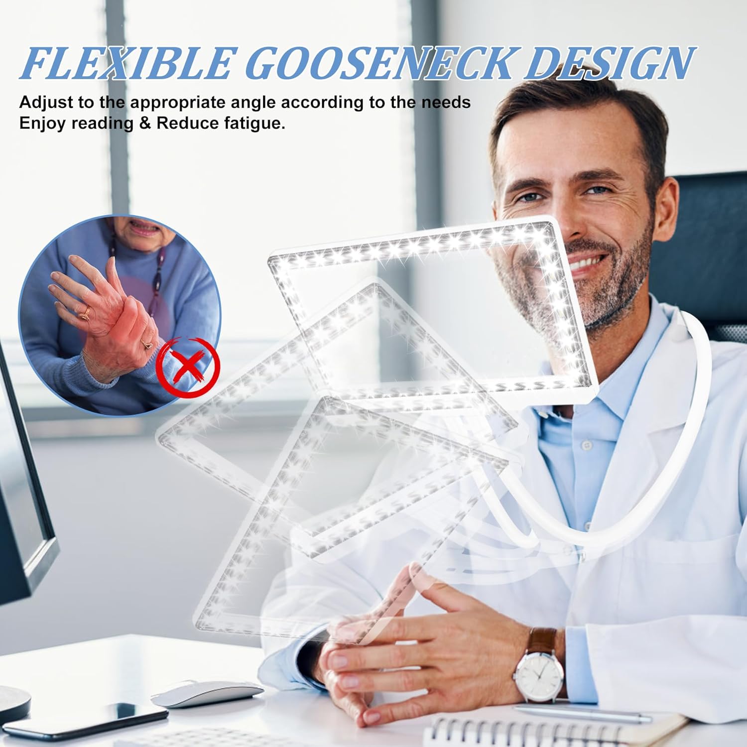 Large magnifiers comes with a flexible gooseneck that can be hung around your neck to free up your hands. 43 super bright LED lights for clear visibility, perfect for low vision, seniors, reader.