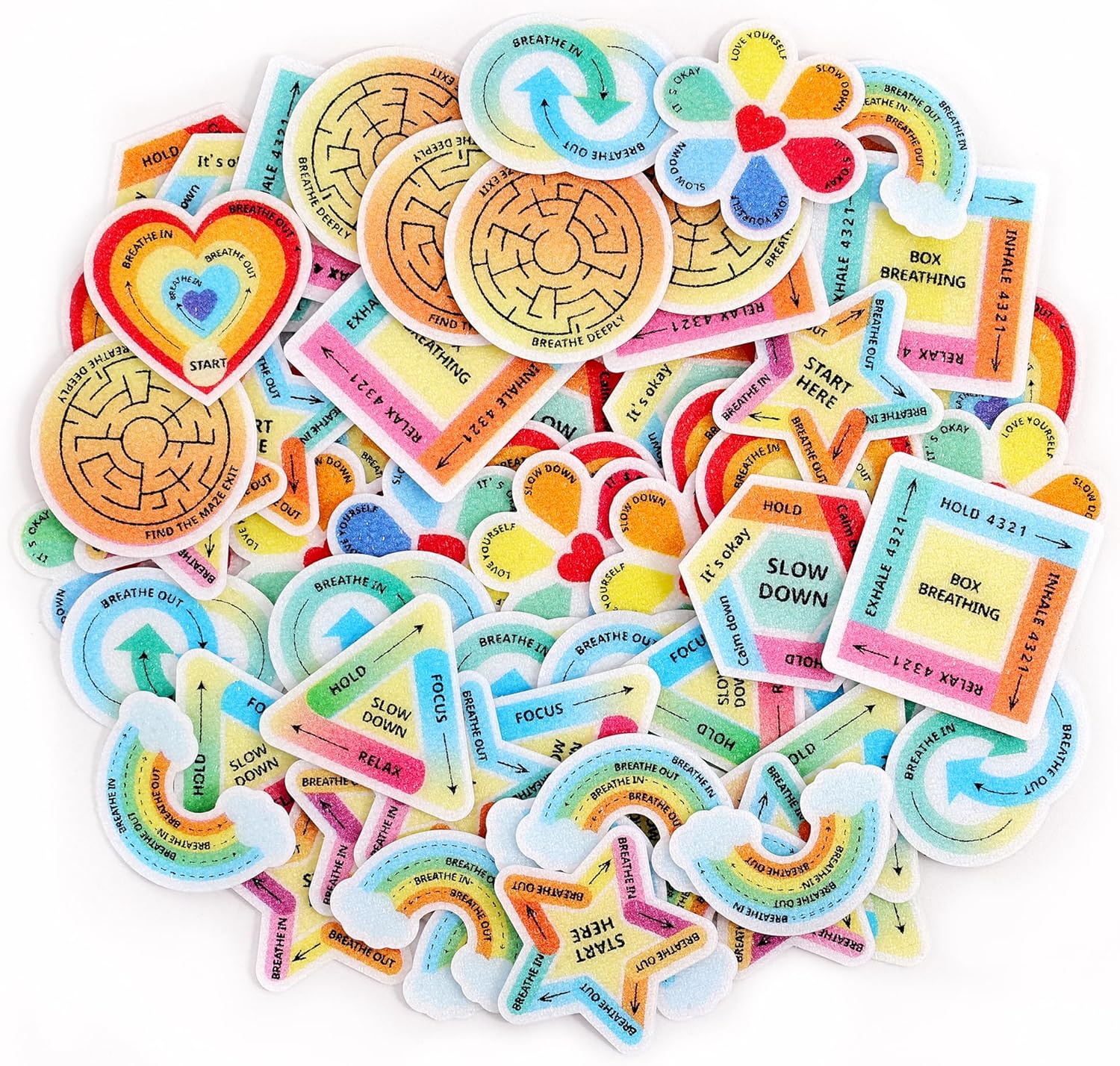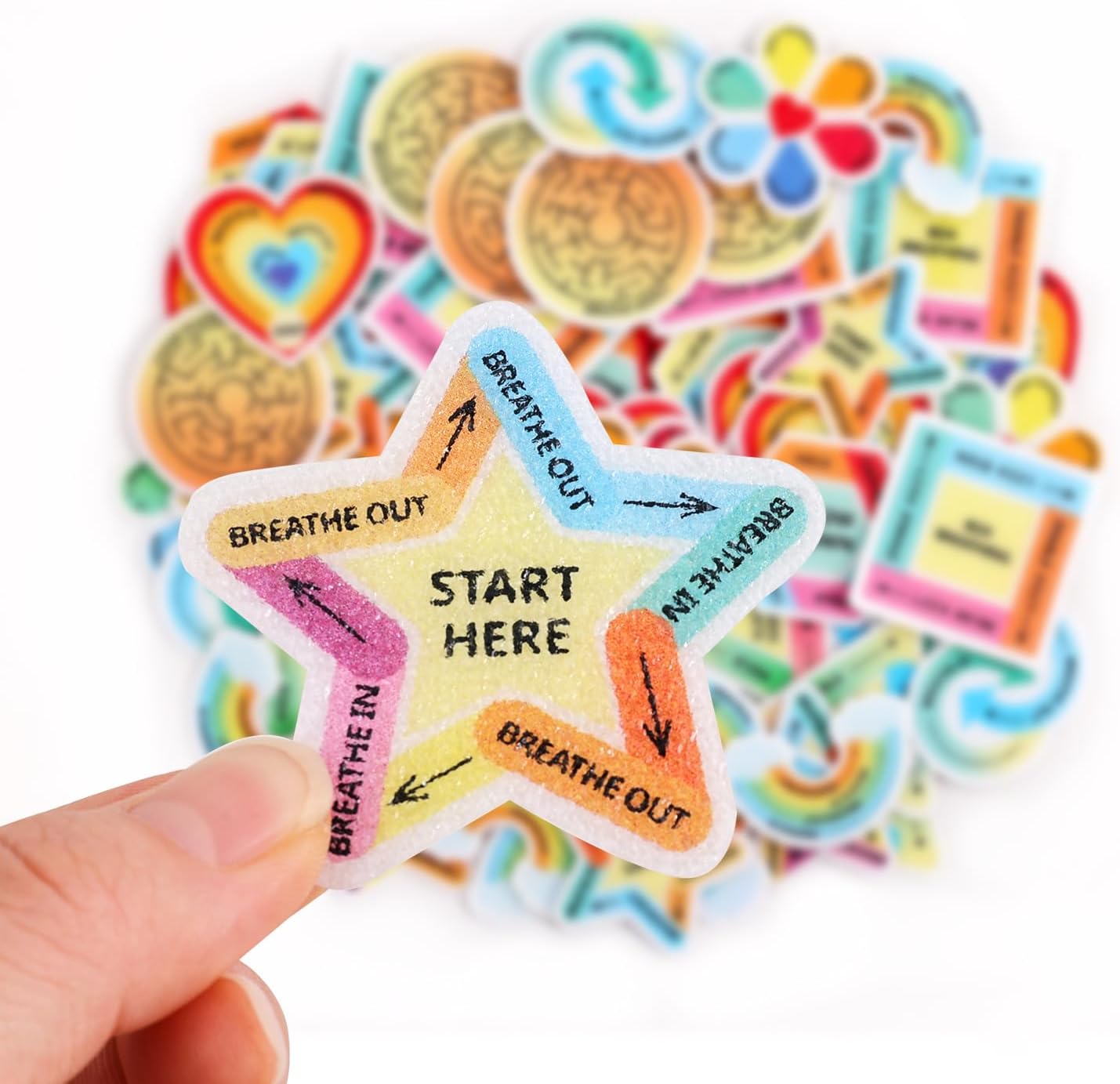 3. 9 Science-Backed Techniques, 1 Pack: Master mindfulness with guided designs: ✓ Heart Breathing ✓ Box Breathing ✓ Figure-Eight Focus ✓ “Slow Down” Cues ✓ Star Breathing Guides ✓ Rainbow Breathing Flow ✓ Finger Labyrinth Tracing ✓ Feelings Wheel Check-Ins