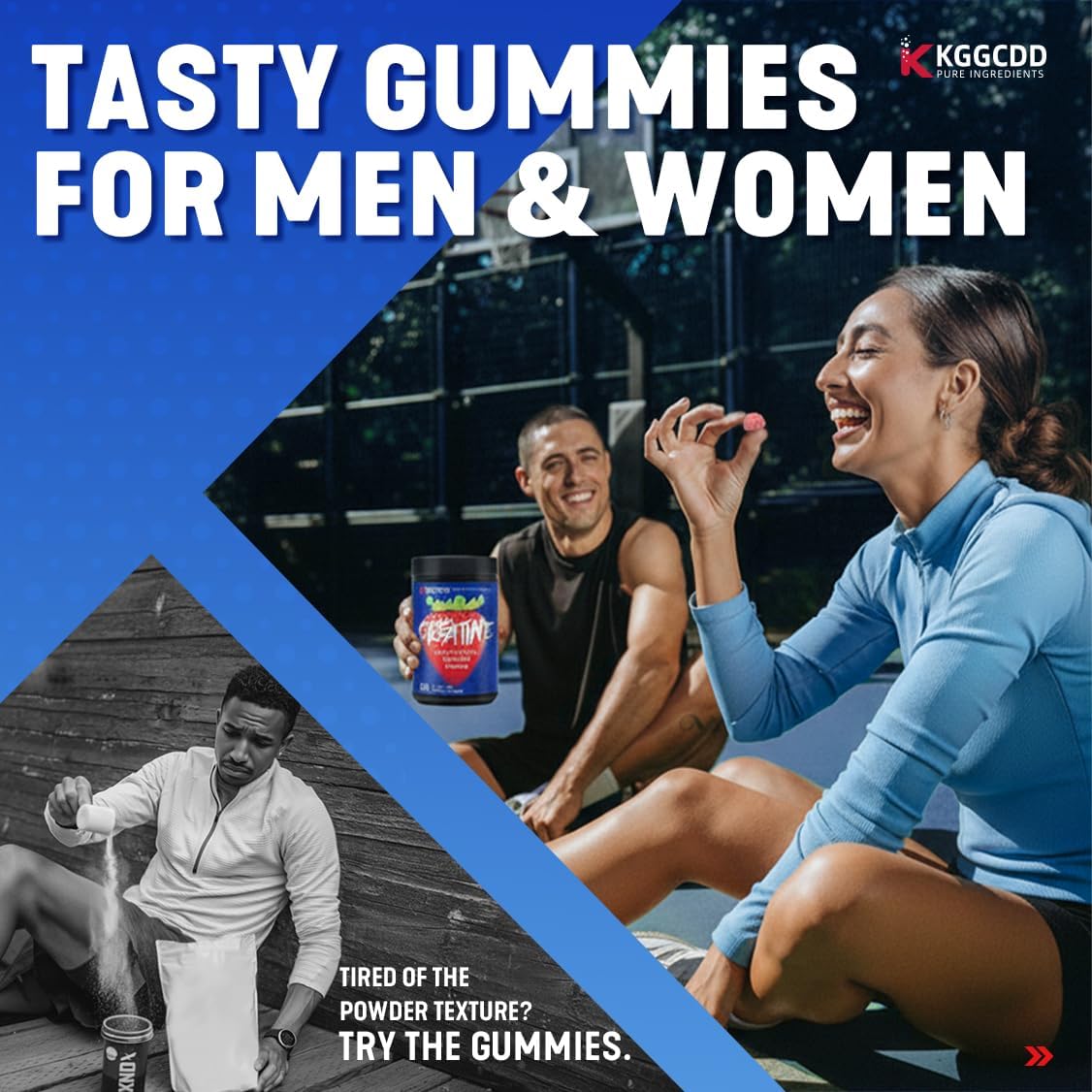 TRUSTED: KGGCDD creatine monohydrate gummies are tested by Eurofins. No artificial additives, sugar free, gluten-free, vegan, non-GMO, No common allergens.