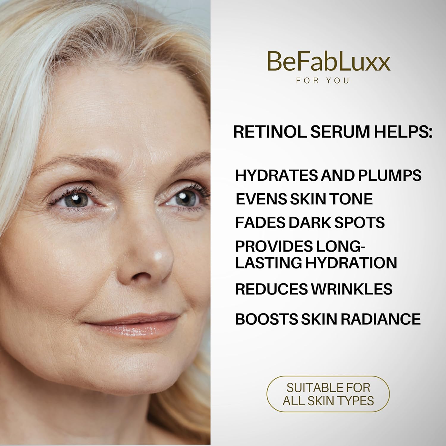 PROFESSIONAL-GRADE SOLUTION: Our Advanced Retinol Serum for Face provides the resurfacing benefits of retinol combined with hydrating ingredients for a balanced approach to anti aging. Skip the five different bottles and embrace a simplified, powerful routine