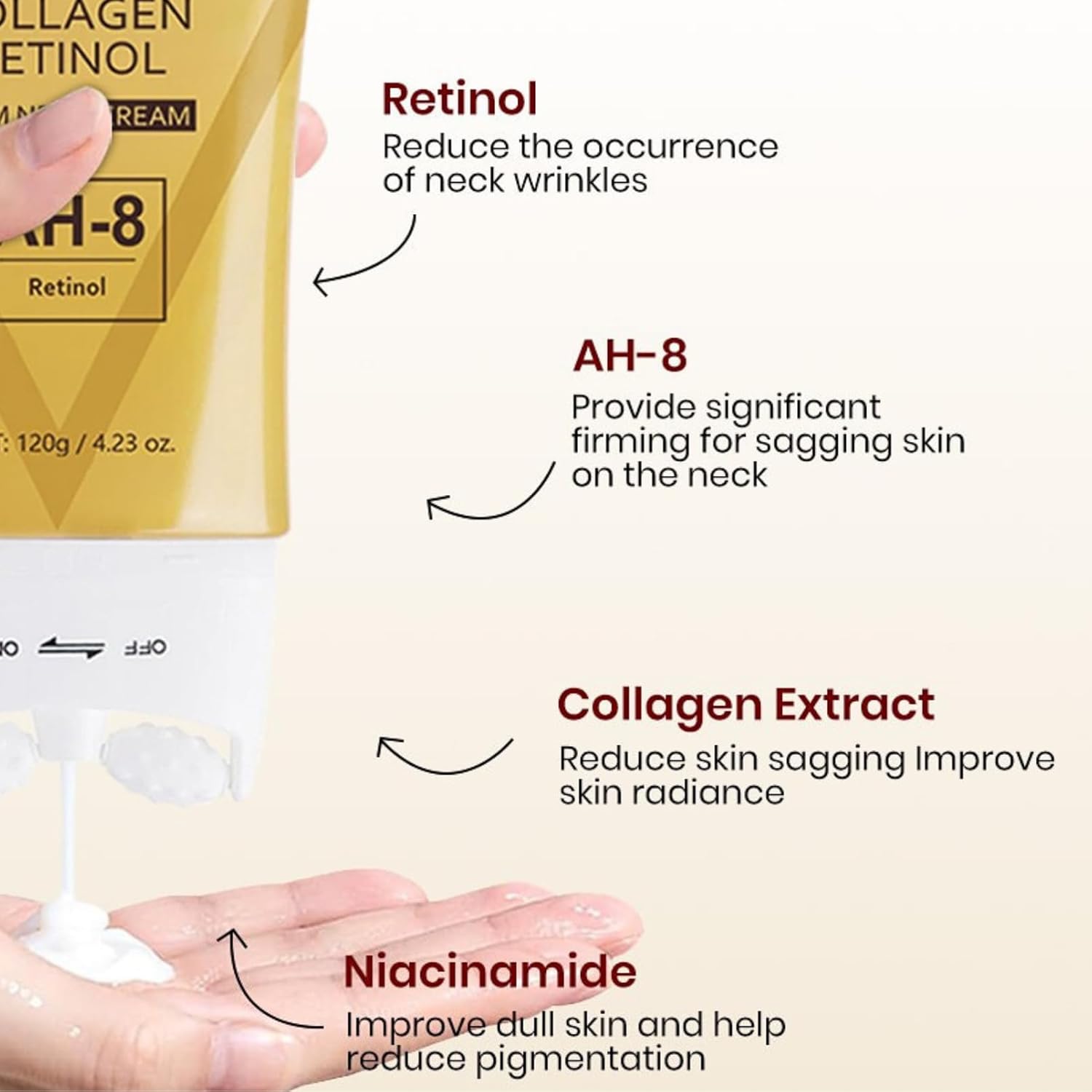 ✔️ Dual-Action Firming: AH-8 Formula with Collagen intensely targets neck wrinkles & sagging for a defined jawline.