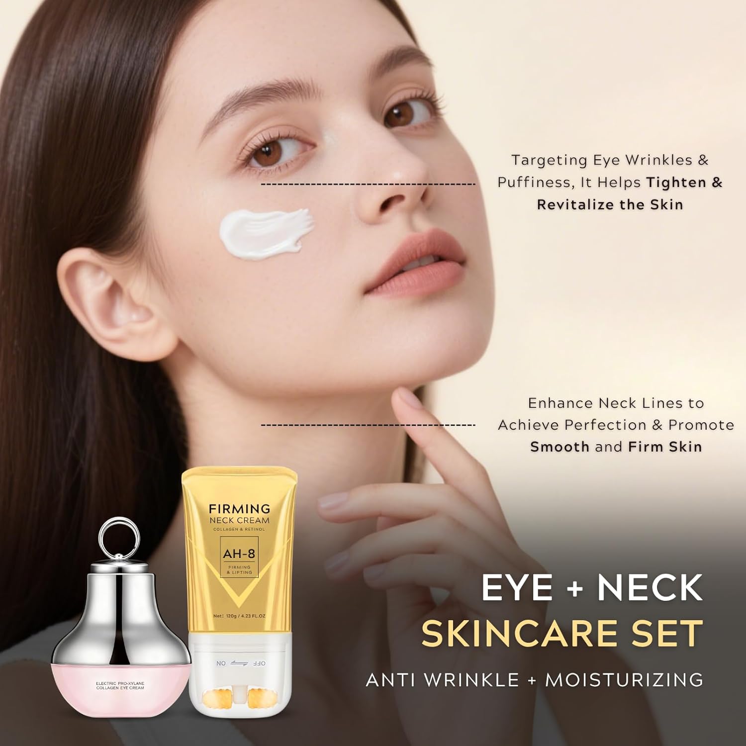 【Complete Skincare Set for Neck & Eye】– This comprehensive neck and eye cream bundle provides a complete anti-wrinkle solution. The AH-8 firming lifting neck cream works alongside the electric massage eye cream to target common signs of aging. This skincare set is very gentle and formulated for all skin types. It’s your simple all-in-one daily routine for enhanced skin elasticity and a refreshed appearance