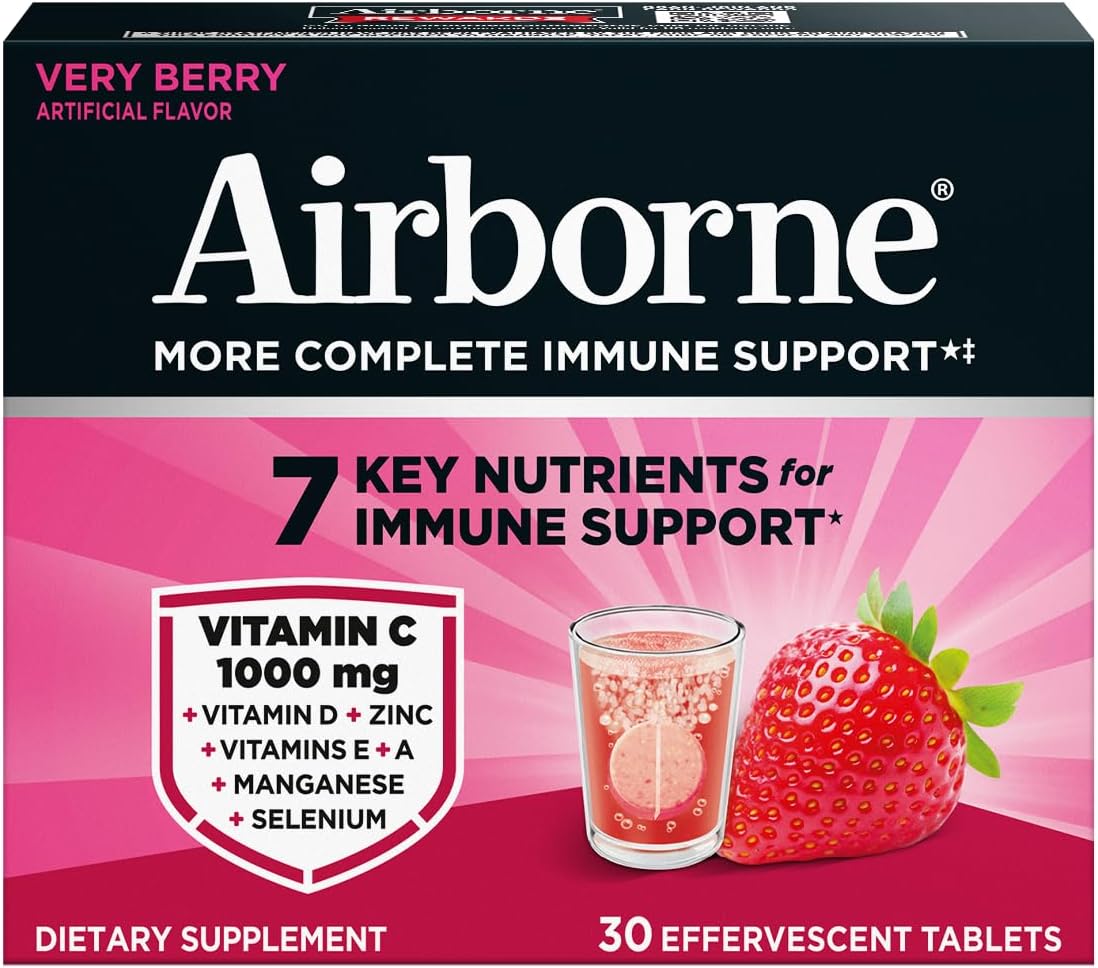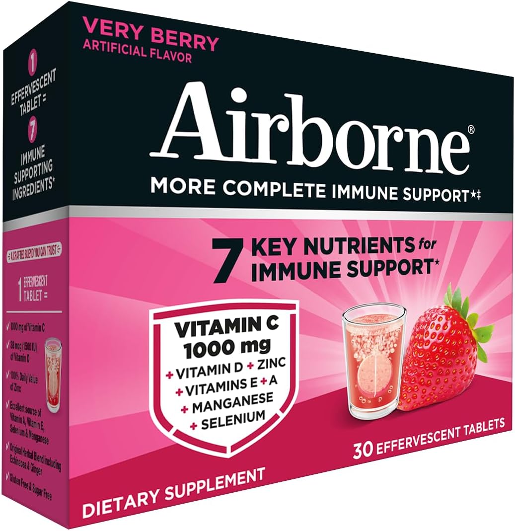 VITAMIN C 1000mg: Airborne immune support effervescent tablets are packed with 1000mg Vitamin C per serving, which helps support your immune system.
