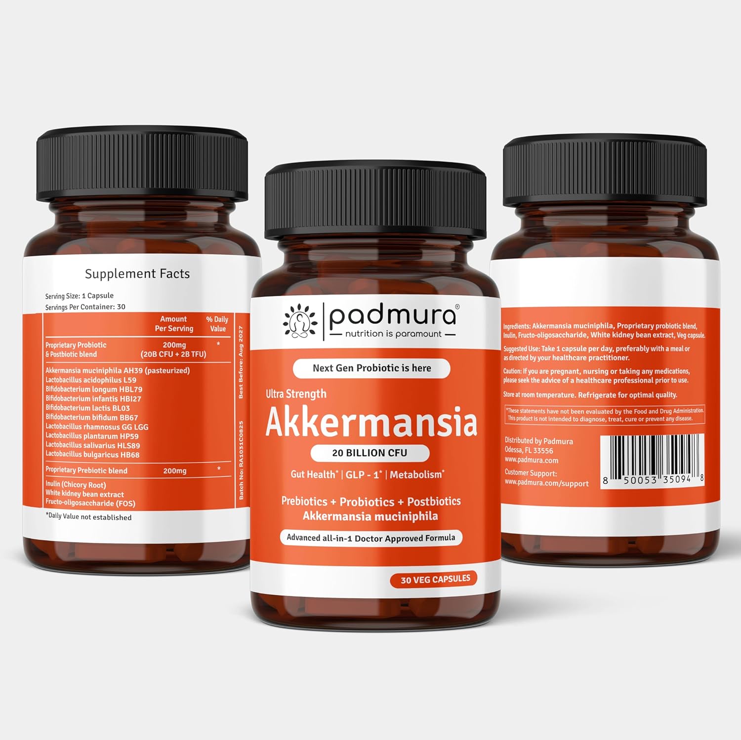 Complete Gut Support: Advanced formula combining Akkermansia Muciniphila probiotic with prebiotic and postbiotic blend for comprehensive digestive health and microbiome balance