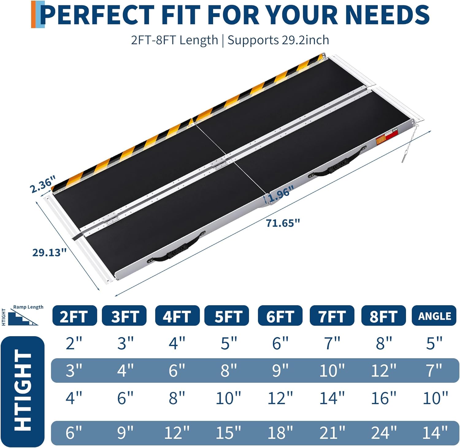 Aluminum Portable Wheelchair Ramp Customizable Height Solutions: Conquer various obstacles with our adaptable Portable Wheelchair Ramp, available in multiple lengths. This adjustable-height Portable Wheelchair Ramp is perfect for tailoring to your specific needs, whether it’s a home step, car entry, porch, shed, or doorway threshold.