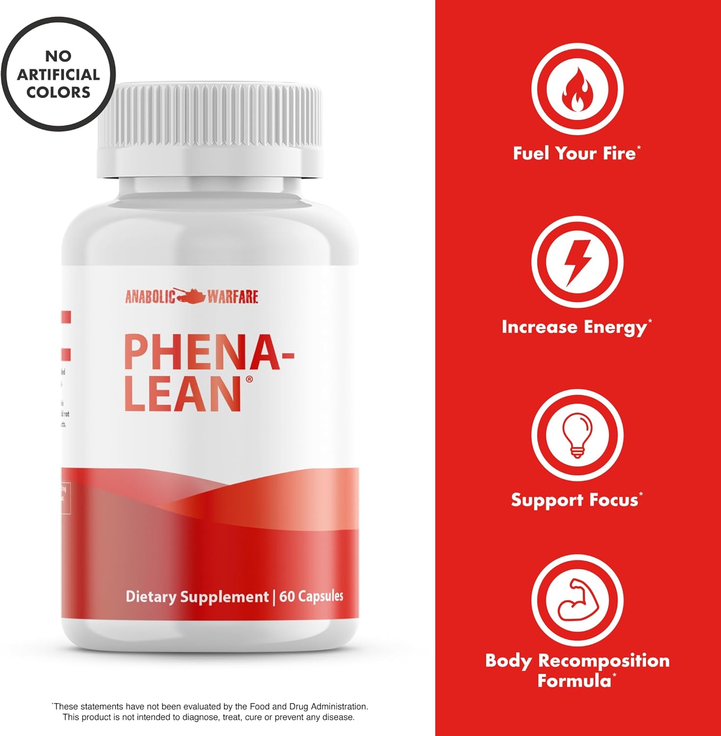 Fuel Your Fire*: You’ve hit the gym, you’ve changed your diet, but you need something to get you to the next level. Phena-Lean is packed with clinically studied ingredients like Grains of Paradise, Lean GBB, and Caffeine Anhydrous to give you the fuel you need. Fuel your Fire with Phena-Lean!*Body Recomposition Formula*: We’ve all got different goals – gain muscle mass, increase strength, trim down – but we all hit plateaus in our routines. Phena-Lean is formulated with Grains of Paradise and Lean GBB, two clinically studied ingredients that support your ideal body composition goals paired with diet and exercise. Break free of those plateaus and get back to your goals!*Cut Out Distractions*: It’s hard to stay motivated when you aren’t focused. Your hour in the gym doesn’t count if you’re on your phone the whole time. Cut out the distractions and stay focused on your goals. Our blend of Caffeine Anhydrous, Di-Caffeine Malate, and L-Theanine increase focus and give you the energy you need to hit those lifts.*Get Those Gains*: Never stop growing! Phena-Lean contains L-Tyrosine which helps to maximize your lean muscle composition without any of the drawbacks of dirty bulking.*All Anabolic Warfare premium supplements are made at our cGMP facility using only the highest quality ingredients to help you with your fitness goals. We stand by our products and your pursuit to live a healthy, happy, well-fueled life.*