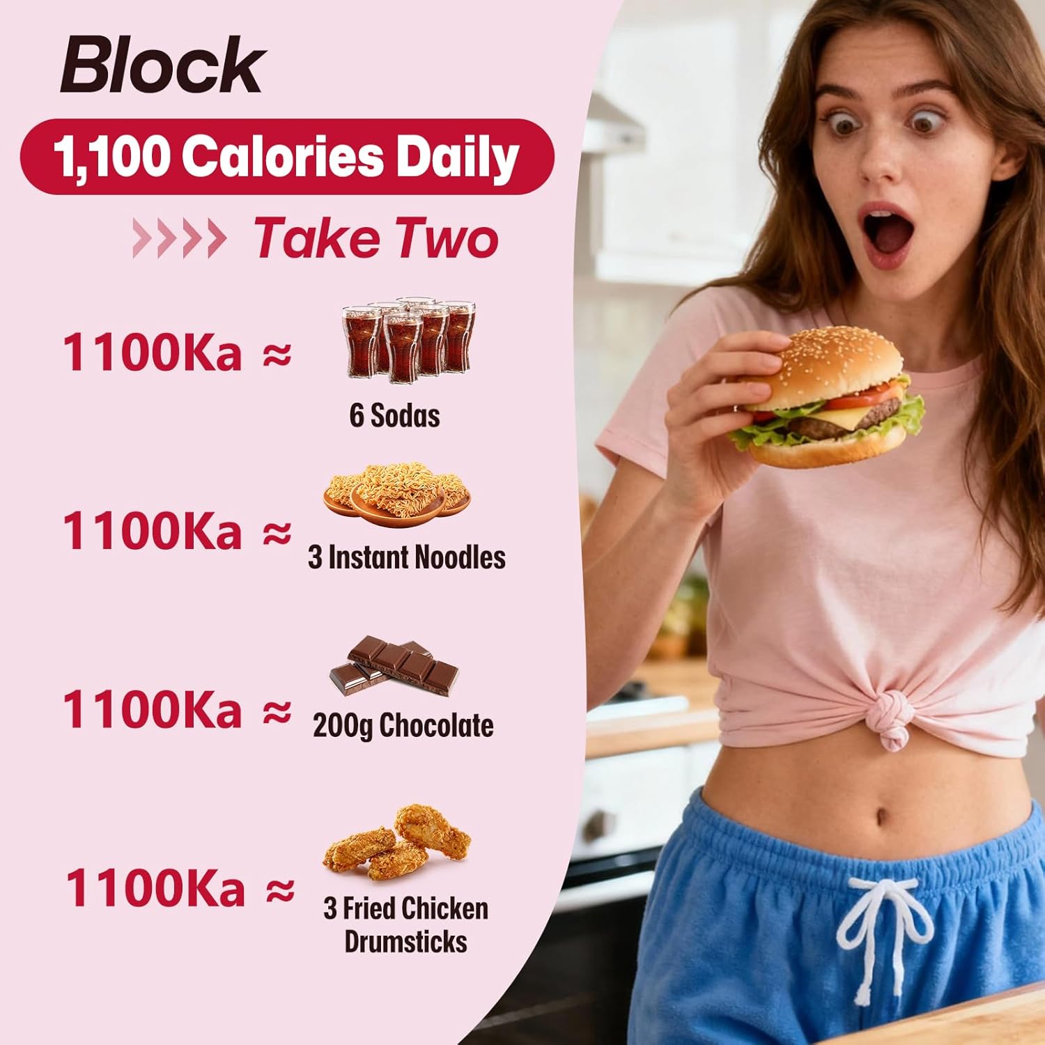 Effortless Daily Dose:Take two daily to help block 1,100 calories from being stored as fat.Our gluten-free, easy-to-swallow capsule goes down smoothly and fits effortlessly into your daily routine.