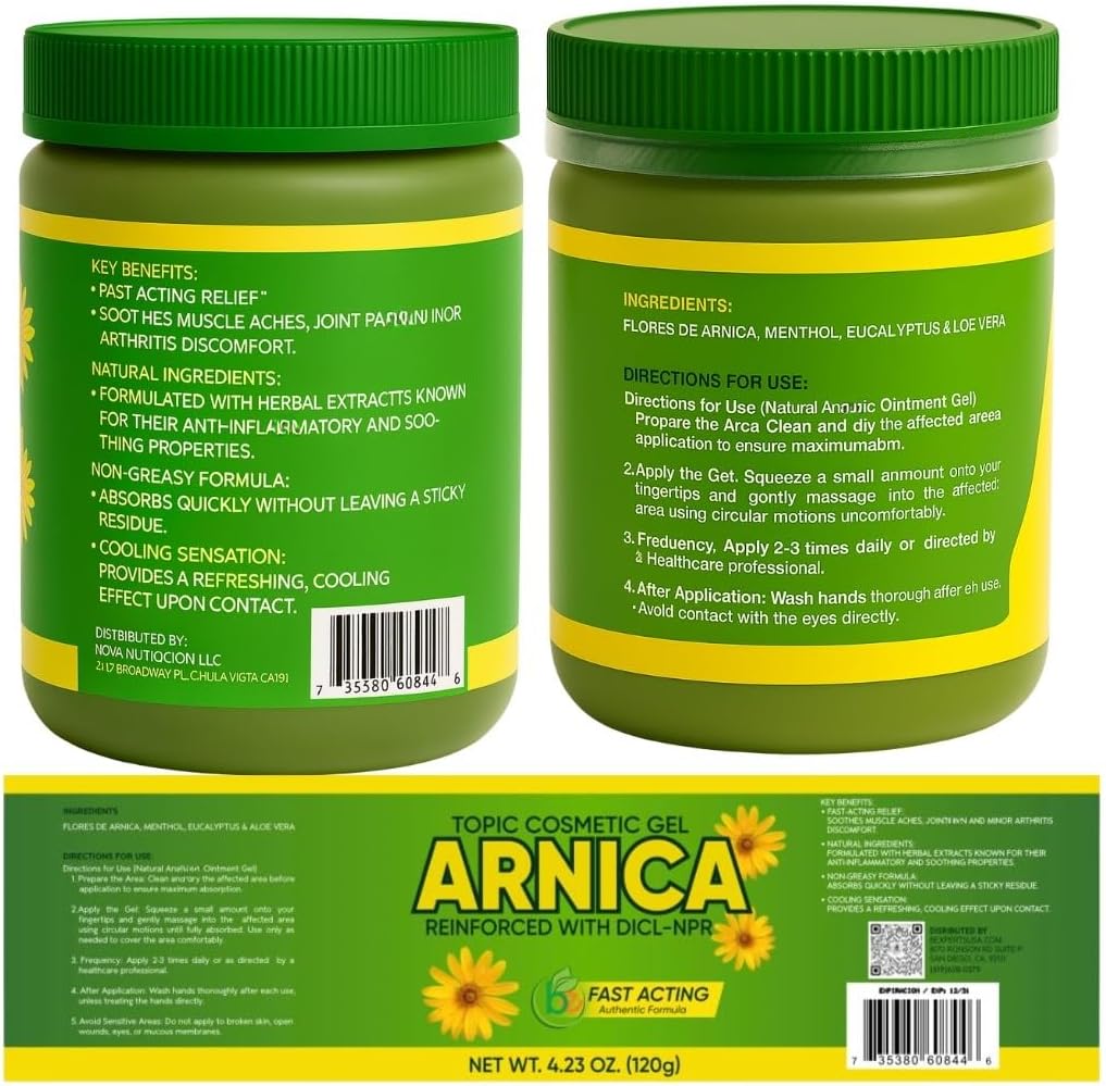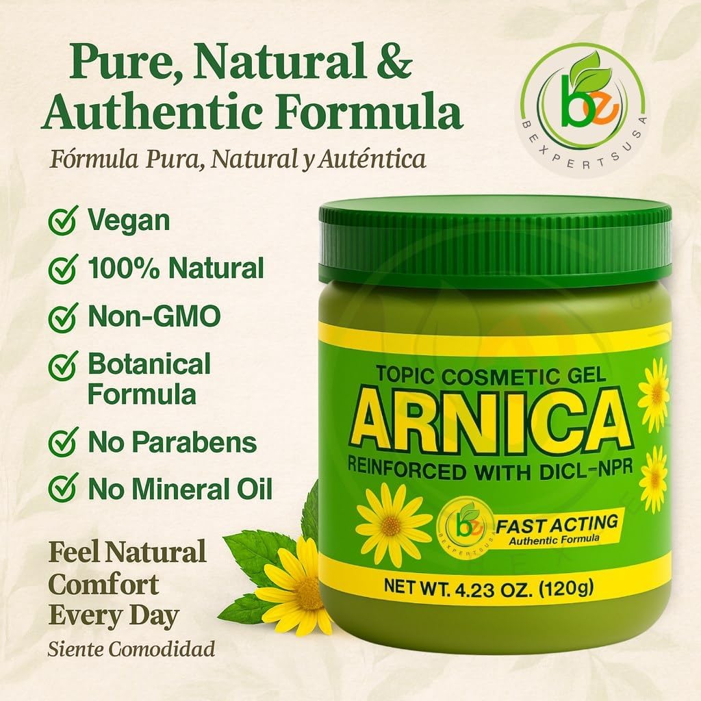 🦵 Daily Use for Muscles & Joints | Uso Diario para Músculos y Articulaciones – Arnica Gel Ideal for neck, back, arms, and legs — perfect for daily massage and post-activity routines. Ideal para cuello, espalda, brazos y piernas — perfecto para masajes diarios y después de actividades.