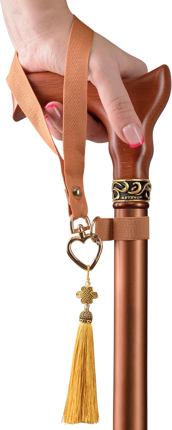 Style Expression: Elevate your look with our fashionable canes for women. It is a true game-changer – featuring a unique wrist strap with a decorative gold tassel, this womens cane adds a touch of class to every step. Perfect for balance, stability, daily use, or travel, our walking canes combine beauty and reliable support.