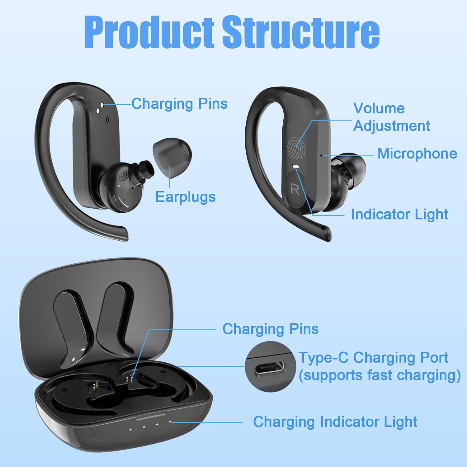 Compact Design & Comfortable Wearing:Ergonomic elastic ear hooks, ultra-flexible ear hooks gently fit the contours of the ear, running, head nodding, turning are firmly locked; with a gift of S/M / L three kinds of soft earplugs, no matter big or small ears a wear that is stable, goodbye to fall anxiety.