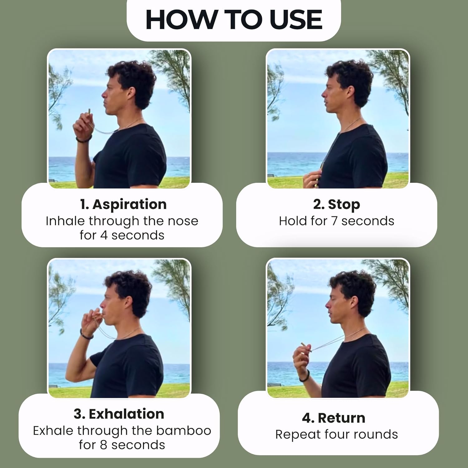 Find your calm anywhere with the MyCalmAir Bamboo Breathing Necklace. This eco-friendly mindful breathing tool helps you practice deep, controlled exhalation to reduce and release stress and improve mental clarity. Crafted from 100% sustainable bamboo and paired with a hypoallergenic stainless steel chain, this piece is safe for sensitive skin and designed for daily use. Simply inhale through your nose, hold, and then exhale slowly through the bamboo pendant — a proven relaxation technique that supports mindfulness and emotional balance. Lightweight and discreet, it’s easy to wear at home, at work, or on the go, making it a perfect companion for busy lifestyles. Whether you’re seeking a meditation aid, a stress relief accessory, or a thoughtful gift, this stylish breathing necklace comes beautifully packaged in a premium gift box, ready to inspire calm and focus wherever you are. Breathe deeper, live better, and carry peace of mind with you every day.