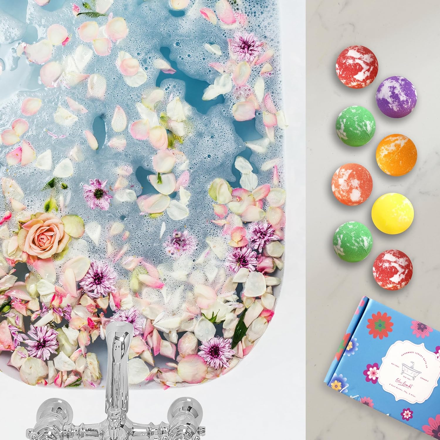 NO ADHESIVES & NON-TOXIC: Our natural bath bombs are made with cruelty-free ingredients. We do not use adhesives for the product’s safety, so the product’s surface may be slightly powdery and is carefully shrink-wrapped. You might notice some powder after opening the wrap, which is normal due to its natural properties.