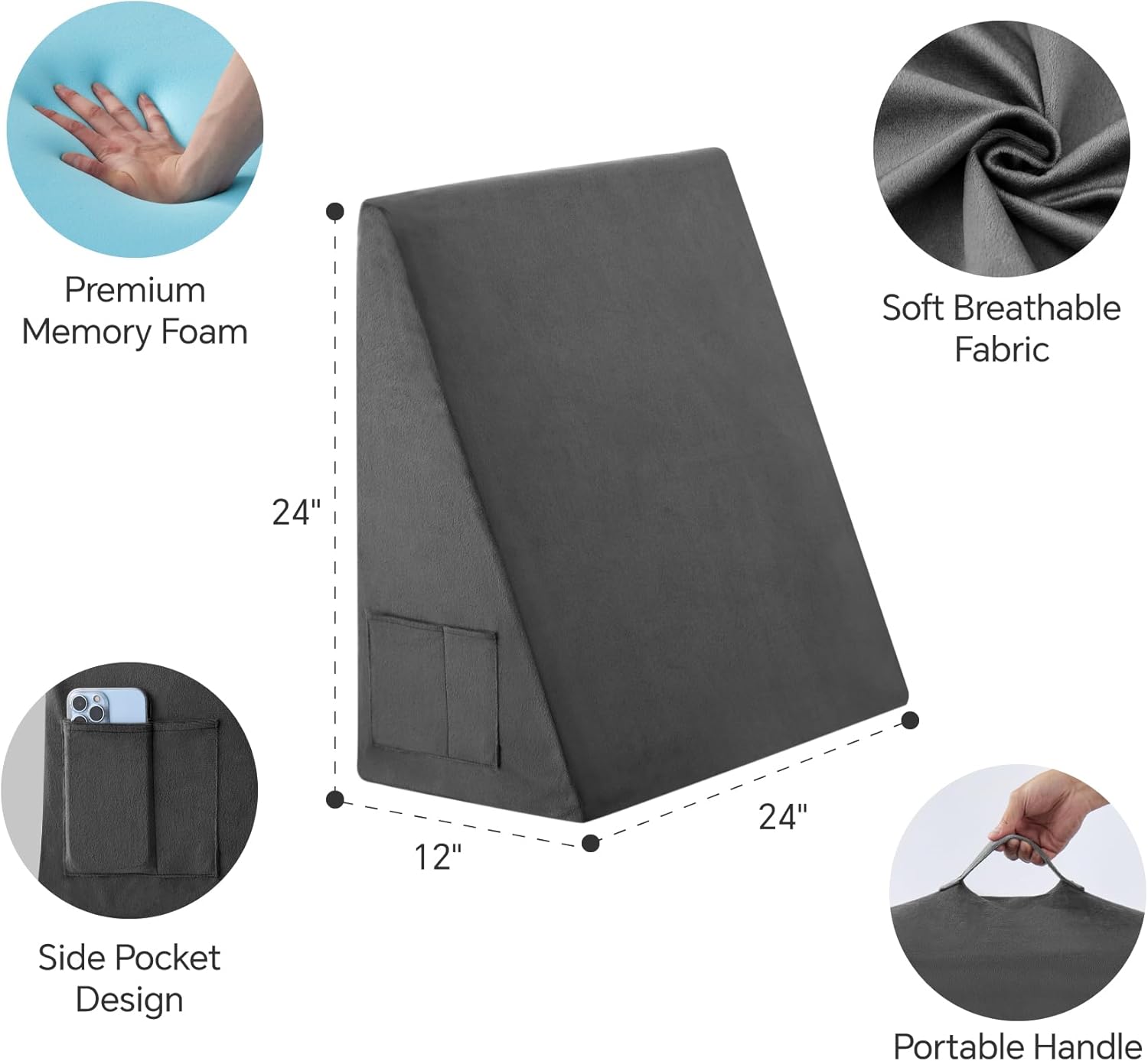 Convenient Pockets & Portability: Built-in pockets add practicality to the wedge pillows for after surgery, allowing you to store essentials like remote controls and glasses within arm’s reach. The addition of a portable handle ensures easy transportation, making it a perfect companion for travel or shifting between rooms.