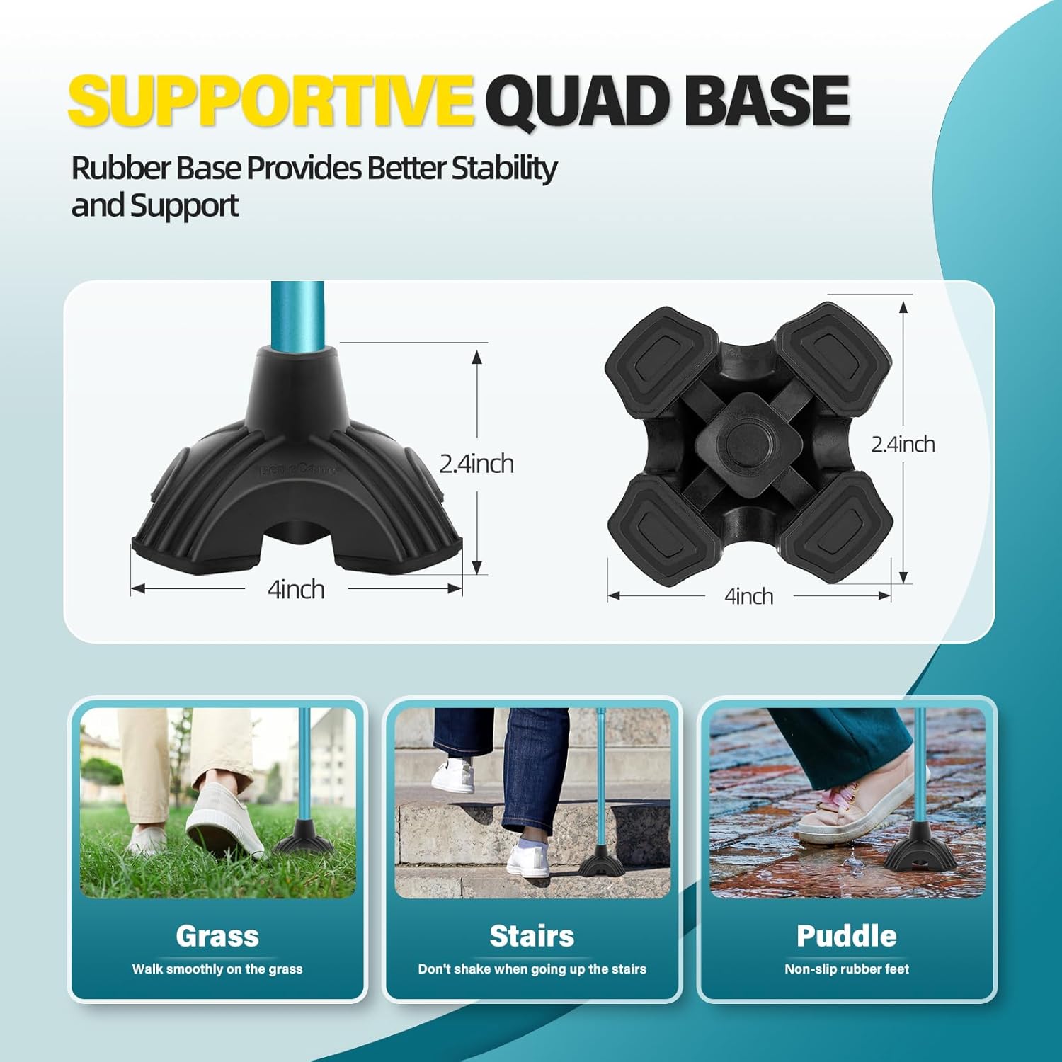 Adjustable Height:A simple push of a button allows you to adjust the height anywhere you want it from 31″ to 36″,suitable for most people between 5’1’’-5’10’’. Whether you’re right- or left-handed, this cane can easily be turned to fit your needs.Make sure that the cane height is even with your wrist or hip joint when you are standing upright and let your elbow is bent at a comfortable angle. Cane should not make you feel heavy or uncomfortable