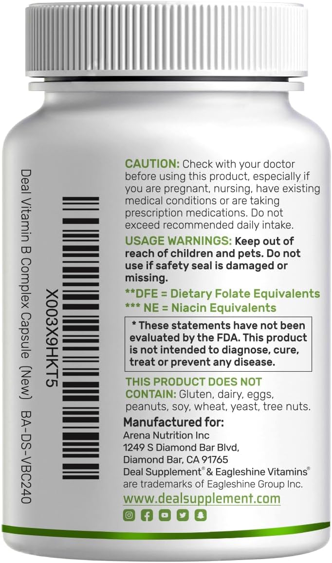 Quality Ensured – Non-GMO B vitamin supplements that are 3rd party lab tested and passed. Made without gluten, dairy, eggs, peanuts, soy, wheat, yeast, and tree nuts.