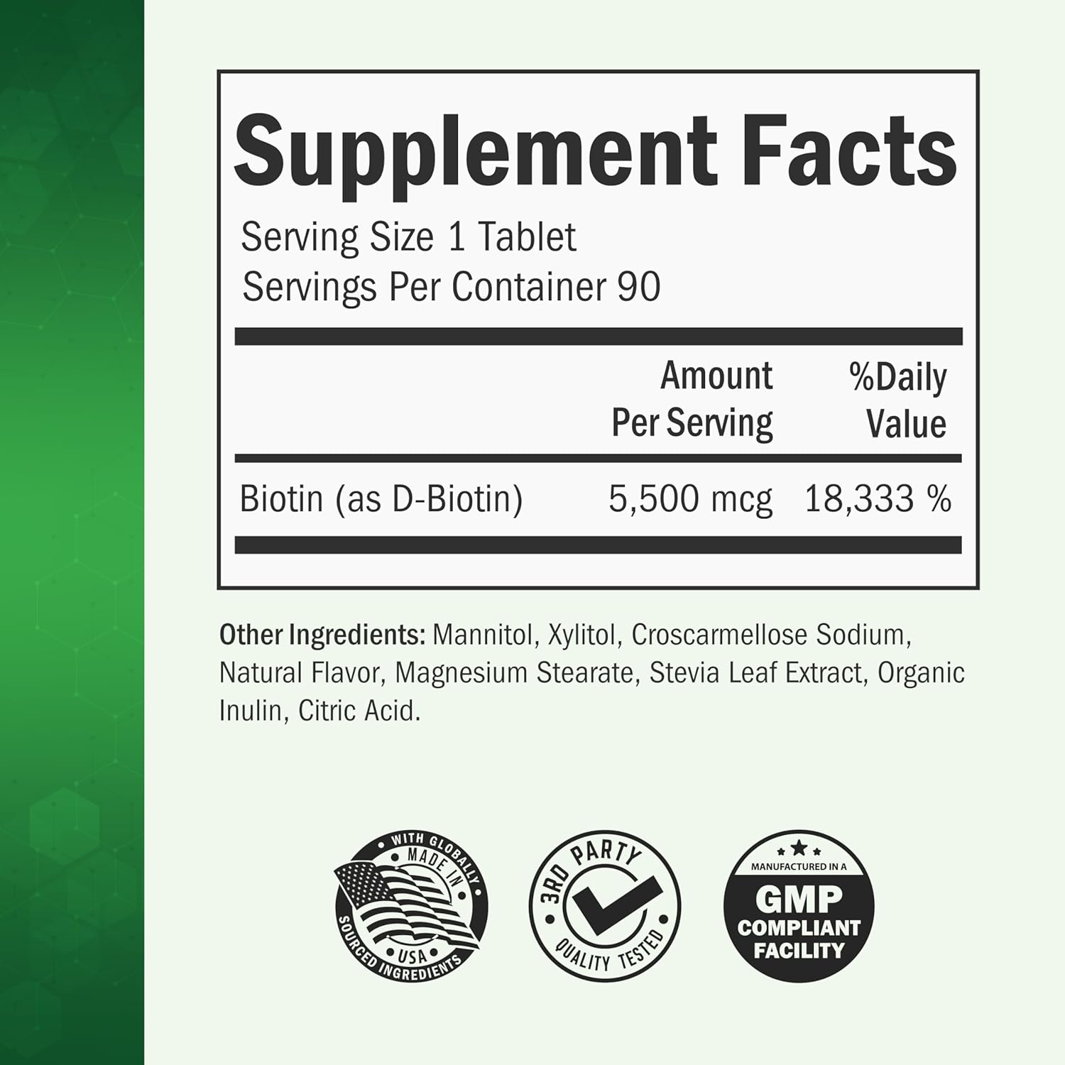 Convenient 3 Month Supply: Never worry about running out with our generous 90-serving count, offering you a seamless three-month supply – enjoy the convenience of having your biotin for hair growth women needs met consistently