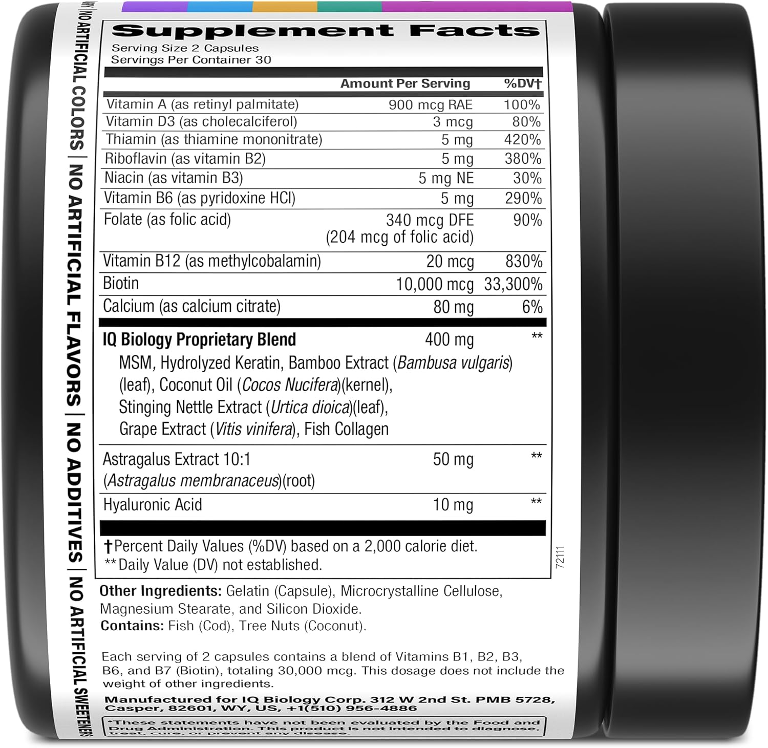 High-Quality Hair Growth Complex – IQ BIOLOGY’s Biotin tablets for hair, skin, and nails deliver premium vitamin B7 (vitamina B7 in Spanish) with astragalus root extract to support stronger nails, vibrant skin, and healthy hair growth. Doctor-formulated and clinically tested in the USA, this pure formula contains no artificial colors or additives, ensuring consistent quality, purity, and daily results for both women and men.* Formulated for safe, long-term daily use when taken as directed.