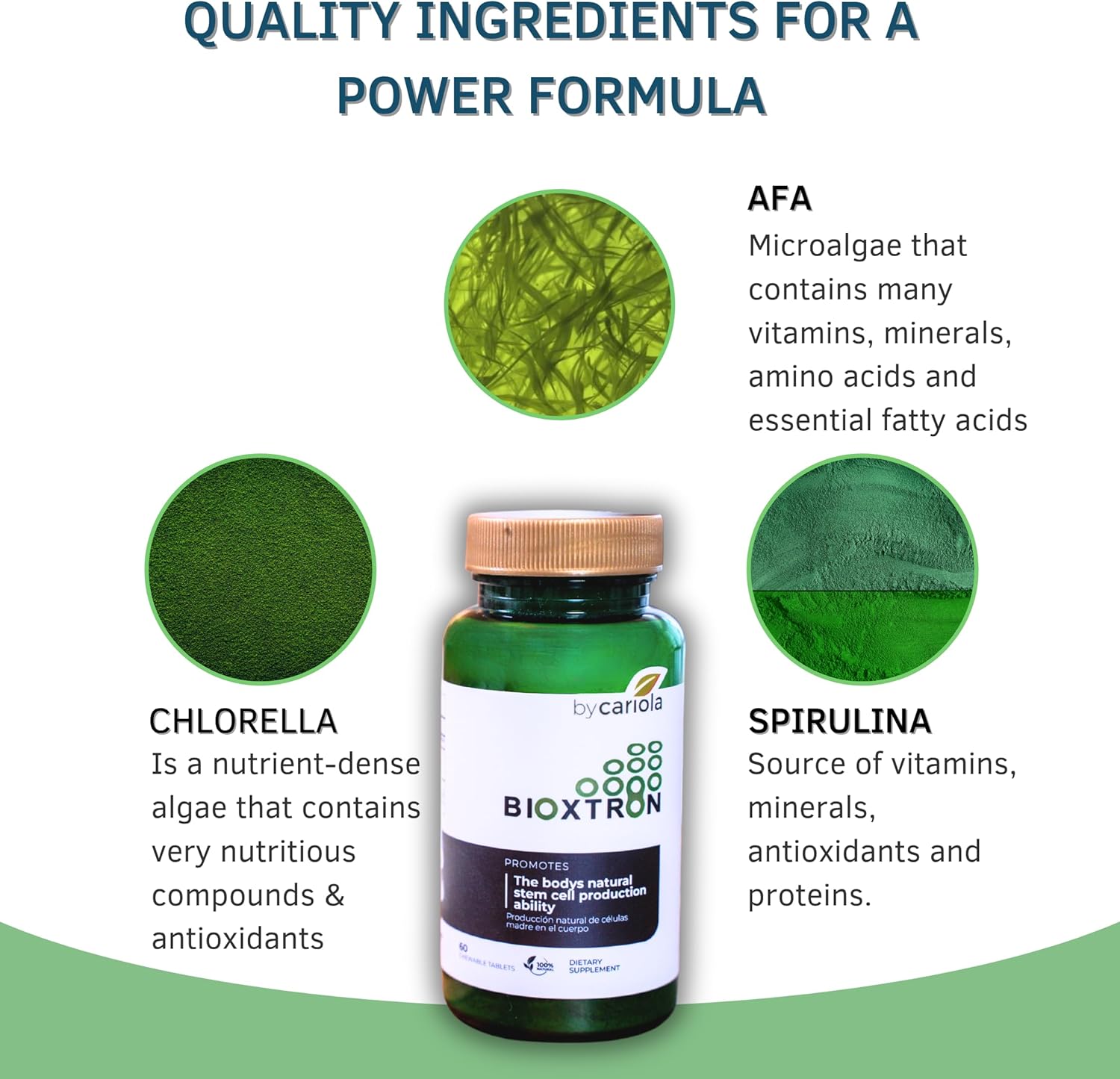SUPPORTS NATURAL STEM CELL PRODUCTION: These chewable tablets combine spirulina, chlorella, and AFA blue green algae to help support the body’s natural stem cell regeneration process. Promote immune health, cellular balance, and long-term wellness with each tasty serving.