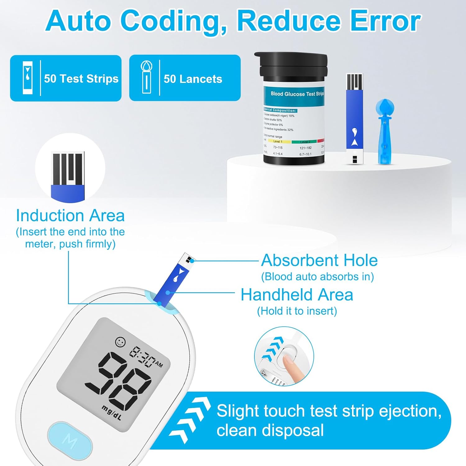 ⚡ 5-Second Accurate Results with No Coding Required:Achieve fast and reliable glucose readings in just 5 seconds with no coding needed. Insert the strip, collect a small 0.5μL blood sample, and get instant results—perfect for daily diabetes management.