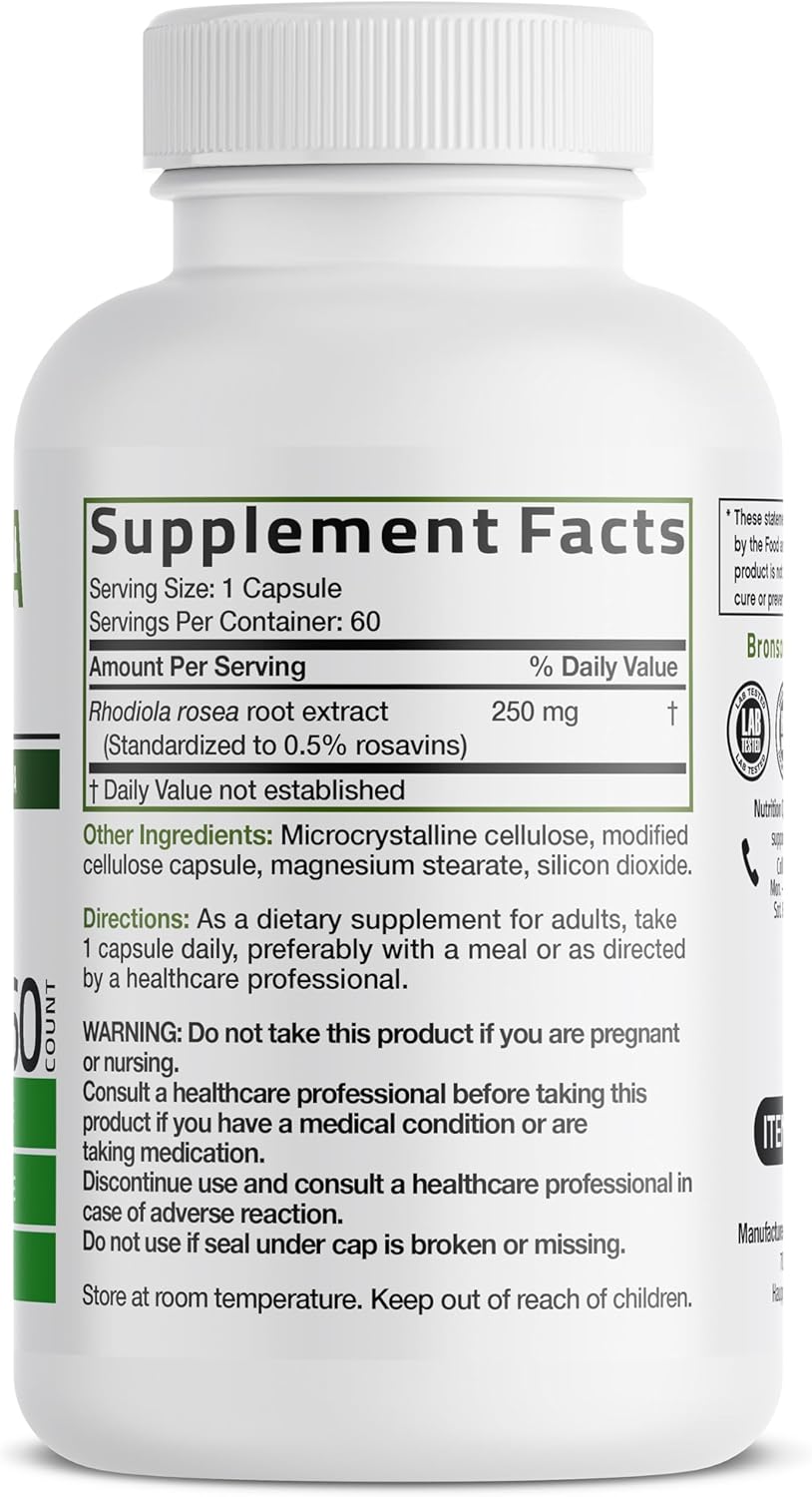 Herbal Support: Bronson Rhodiola Rosea helps to support a healthy stress response, mood and brain health.*