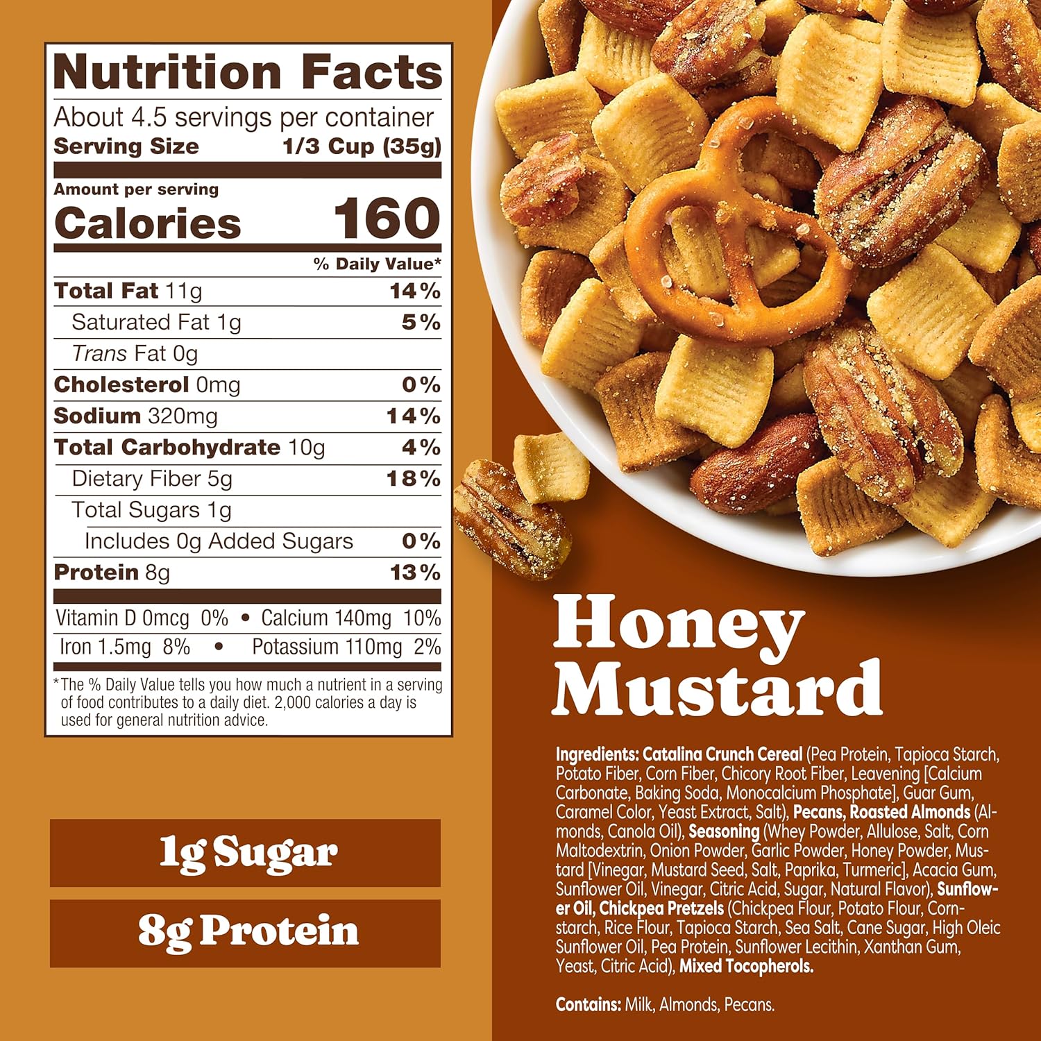 SNACK HAPPIER WITH BETTER INGREDIENTS: Our snack mix features a mouthwatering blend of nuts, chickpea pretzels and our signature cereal layered with honey sweetness and zesty mustard.